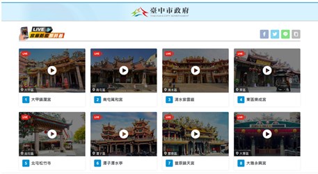 民政局說明,「宮廟防疫即時看」彙整中市大甲鎮瀾宫、大雅永興宫、北屯三官堂、北屯松竹寺、西屯惠來里福德祠、西屯福壽宮、東區樂成宮、南屯萬和宮、清水紫雲巖、潭子潭水亭、豐原鎮天宫、東區南天宮及靜宜大學主聖母堂等13間宗教場所合作,民眾只要至民政局網站專區( http://taichung-civil.csii.com.tw ),即可觀看宗教場所即時影像,避開參拜人潮,降低感染風險。(5/14*8)*民政局