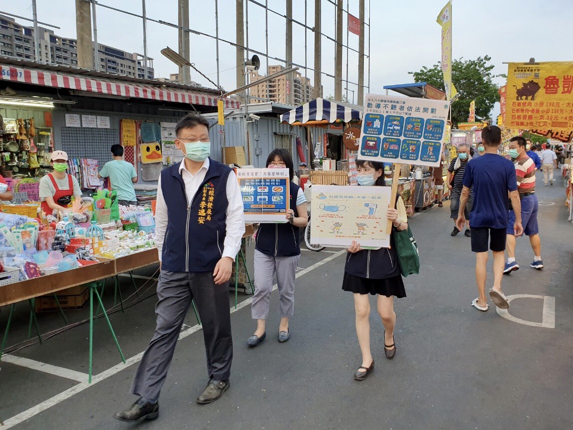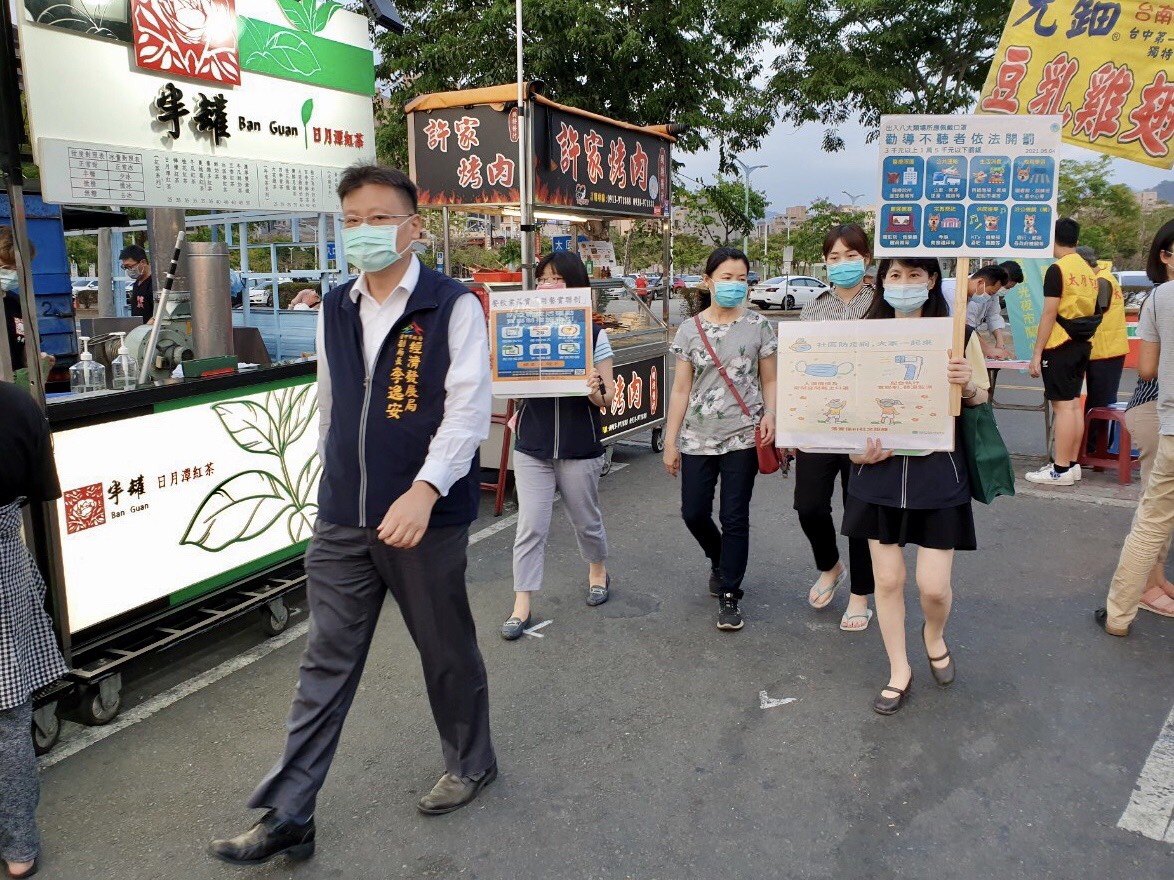昨晚再由經發局副局長李逸安帶隊至太原觀光夜市,稽查防疫加嚴措施 (2)