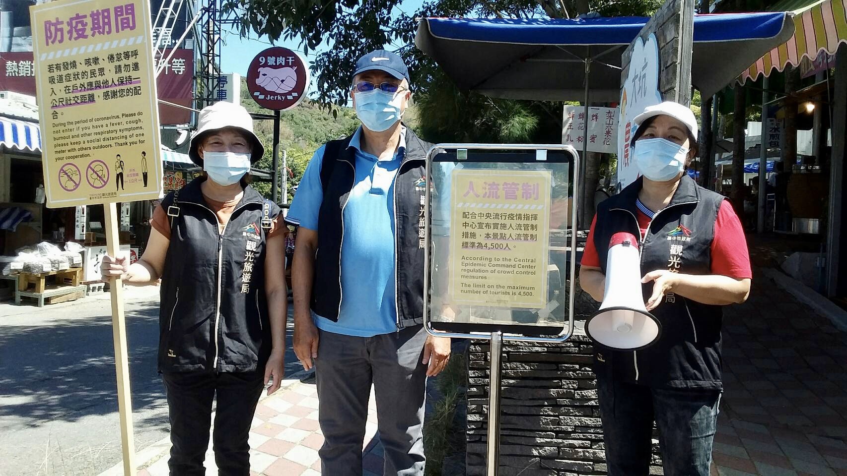 因應新冠肺炎疫情升溫,防疫層級提升至第二級,中市府觀光旅遊局加強人潮眾多場域包含知名觀光景點、風景區、觀光遊樂業及旅客服務中心防疫措施,並提供「台中市即時景點或鄰近重要道路實況影像」服務,呼籲民眾旅遊時佩戴口罩、勤洗手、保持安全社交距離,市府同時加強安心旅宿稽查,落實防疫規範,並持續媒合旅宿業者成立居家檢疫替代所,來守護台中市民健康。