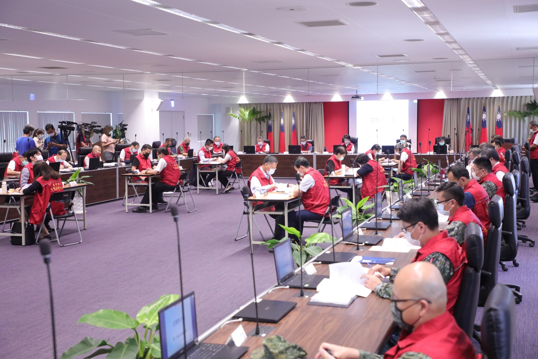 由於國內疫情嚴峻,盧市長今日召開「因應COVID-19疫情嚴峻兵棋推演會議」,召集市府一級主管、防疫中心代表、軍方民防等單位,分為3階段、17項議題進行演練,3階段分別為「擴大管制第一期」、「擴大管制第二期」及「擴大管制復原期」等情境,制定各局處因應措施,確保物資整備供給與應對,希望讓台中在疫情防堵與處理上更有準備,也讓市民安心。