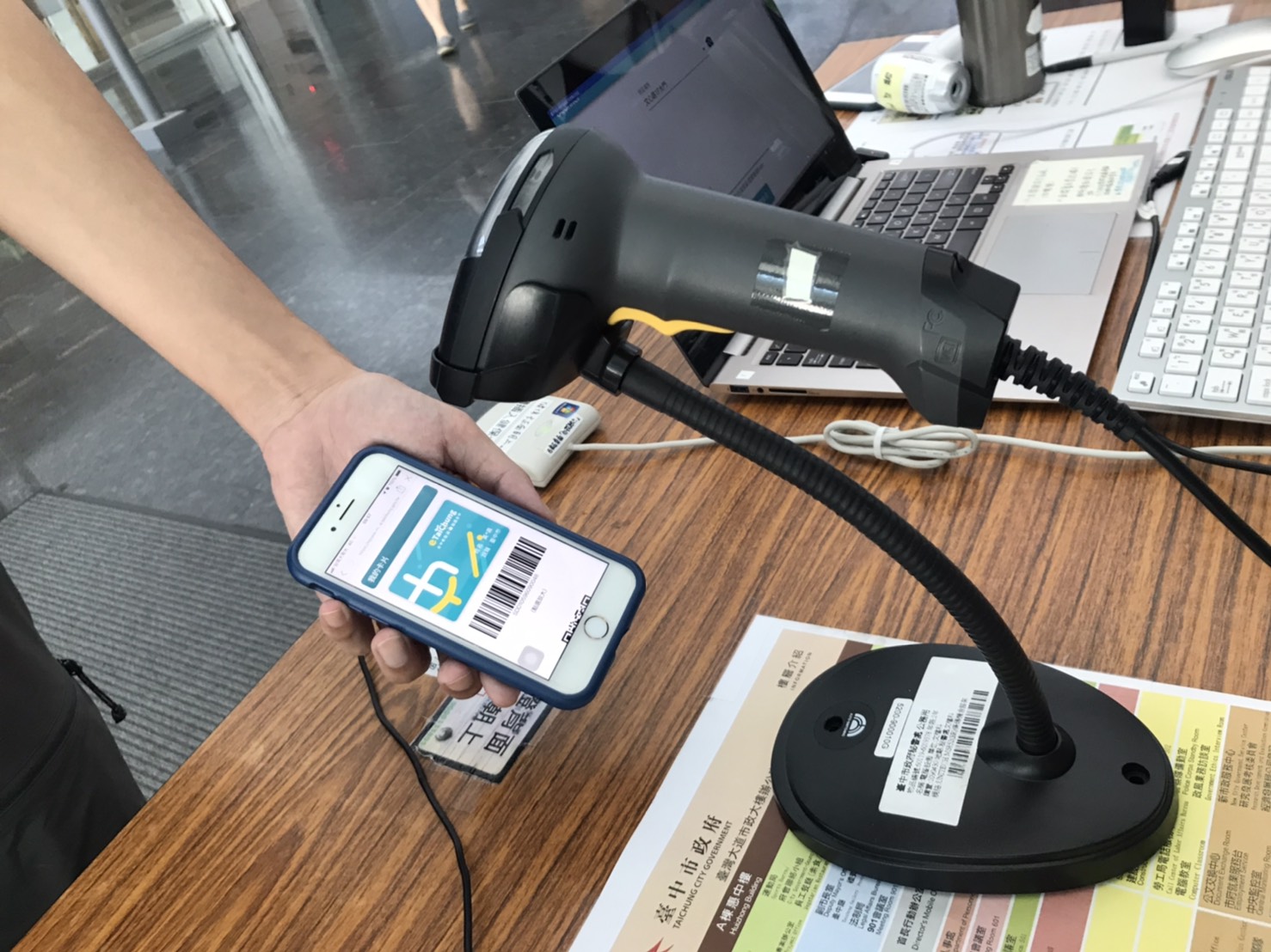 疫情升溫、防疫提升!台中市政府今年3月開辦台中e指通,透過虛擬市民卡的方式讓民眾一次登入處處通。因應疫情升溫緣故,市府研考會加快腳步,自明(17)日起,民眾可使用台中e指通數位市民虛擬卡作為市政大樓及所屬辦公場館進行實聯登記,只要出示專屬一維條碼或QR CODE供服人員掃瞄即可完成,不用重覆填寫資料,一次登入註冊即一勞永逸,讓防疫更便利!