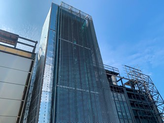 由台日知名建築師聯手打造的「台中綠美圖」,外觀大量採用玻璃帷幕增加自然光線、引入風流。為確保玻璃帷幕可適應台灣氣候,建設局建置「1比1」局部試體,利用渦輪飛機引擎仿真颱風,經測試,玻璃帷幕順利通過風雨考驗,建設局將積極展開玻璃帷幕產製,推展工程後續進度,綠美圖建置里程又往前邁大步!