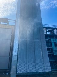 建設局為達成市長盧秀燕對公共工程的高品質要求、確保完工後的綠美圖具一定強度的防水與抗颱性能,特別要求建築師為台中綠美圖外牆玻璃帷幕、金屬板防火牆及屋頂天窗系統規劃風雨測試,驗證相關設計強度及施工品質安全無虞、符合規範。
