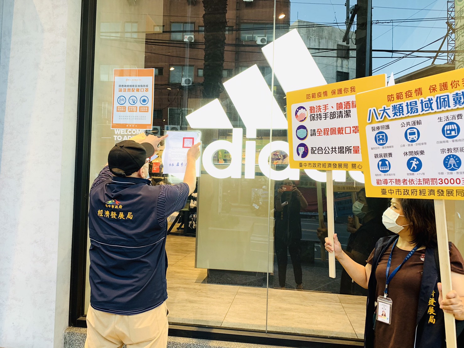 經發局表示,台中全市夜市昨日起至今年6月8日暫停營業,另針對台中首例本土確診病例,足跡涉及東海商圈,市府除加強該區公共區域消毒,也與東海商圈主委郭達鴻和當地多位里長至該商圈及周邊宣導公告的防疫措施。此外,經發局派員至夜市進行稽查及張貼公告,要求不得營業。
