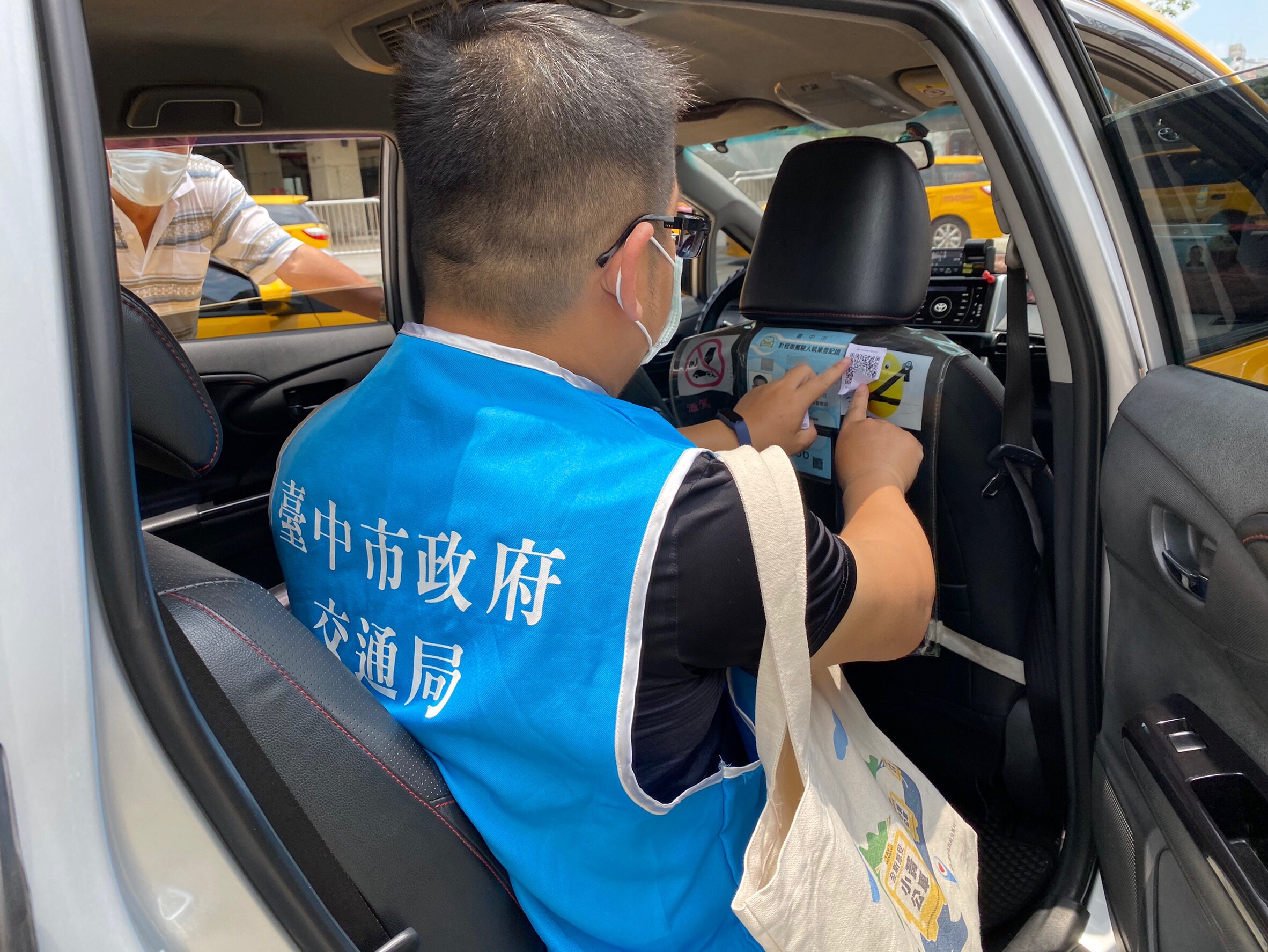 全國疫情警戒日前已提升至第3級,各大運輸場站配合行政院實施「簡訊實聯制」,交通部規定,各計程車駕駛人須於5月26日佈建完成,落實搭乘計程車實聯制,台中市政府交通局已請各計程車業者申請「簡訊實聯制」QR-Code,建議統一張貼在副駕駛座椅背後方計程車駕駛人執業登記證左上角,方便乘客乘車時掃描,希望大家共同落實防疫追蹤,防堵疫情擴散。