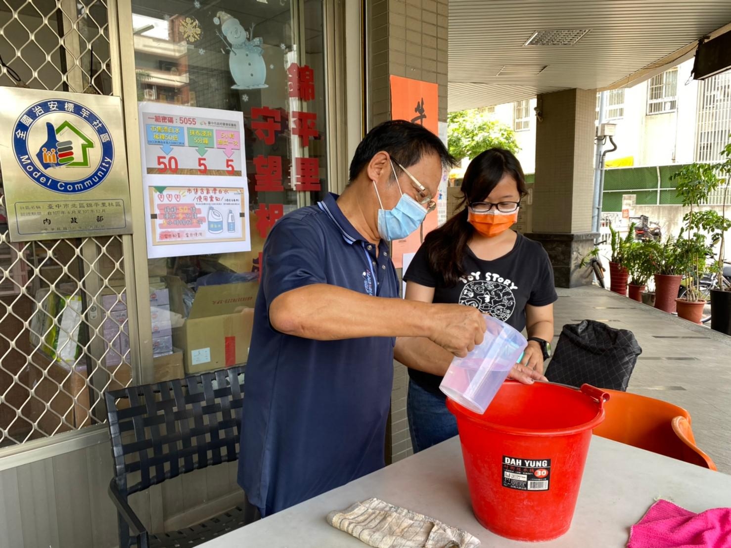 新冠肺炎疫情嚴峻,全國三級警戒延至614日,有鑑於本土確診者及相關足跡已遍及各大縣市,台中市環保志工主動配合全市28區大消毒,除了指導民眾製作簡易自製消毒水,並大呼消毒宣導口號「密碼5055」,盼民眾總動員,為居家環境消毒把關。
