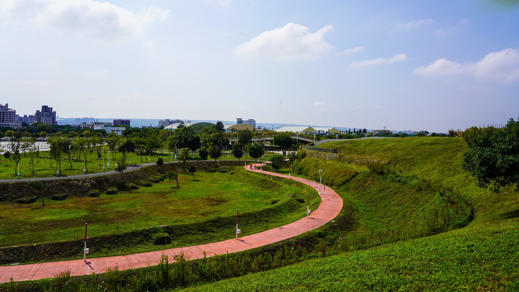 陳局長指出,中央公園由法國景觀設計師Catherine Mosbach、Philippe Rahm與台灣團隊「劉培森建築師事務所」聯手設計打造,歷經10年努力終於正式啟用。將水湳機場原址重新規劃,打破過去機場水泥單一且硬鋪面的地貌,重新復育現地成為多樣化地景及生物棲地的都市綠洲,兼顧寧靜舒適、生態、景觀、滯洪、減災、減碳及遊憩等複合功能,達到世界級的智慧型生態公園。