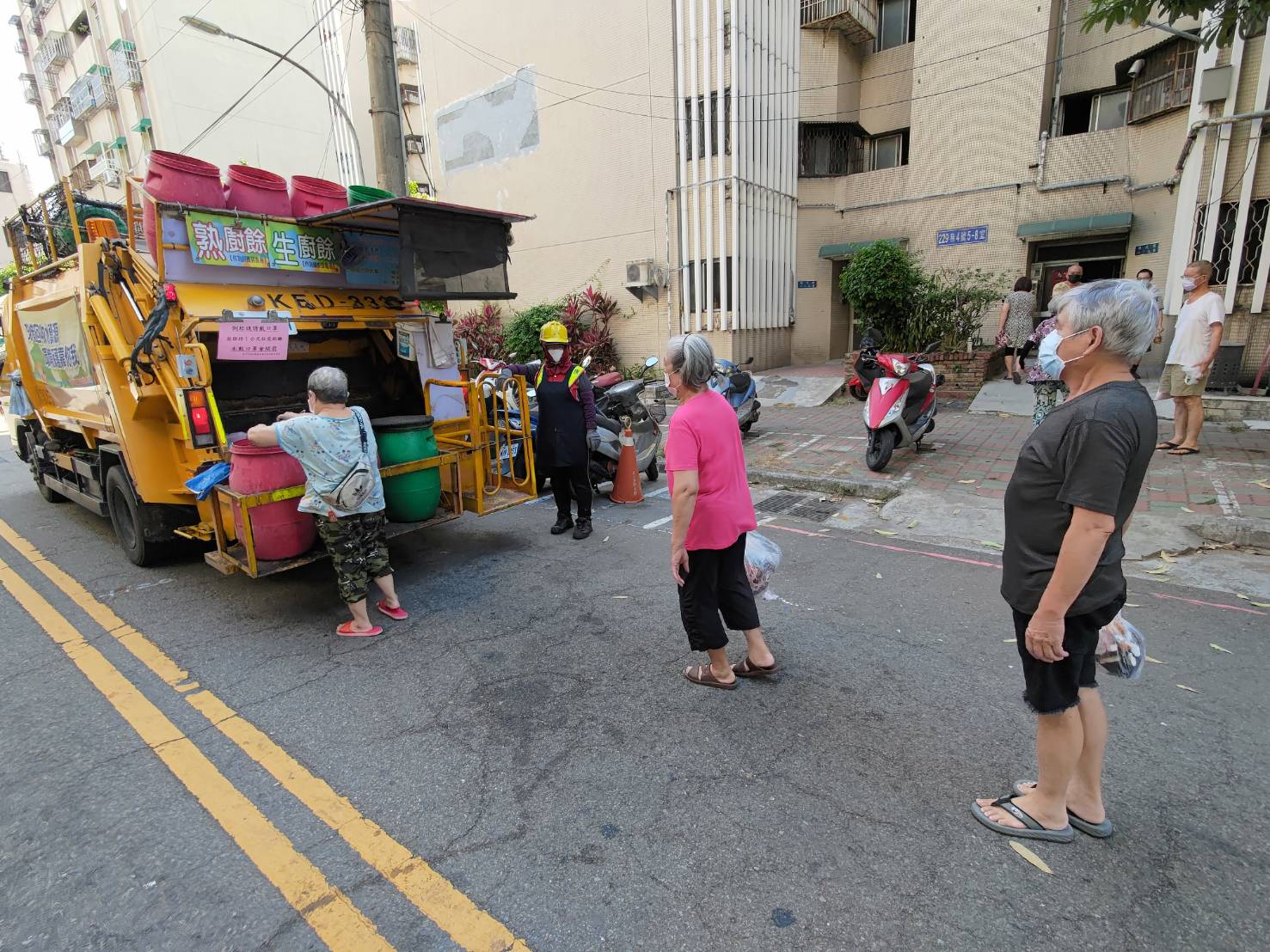 民眾倒垃圾應戴口罩 保持社交距離排隊等候