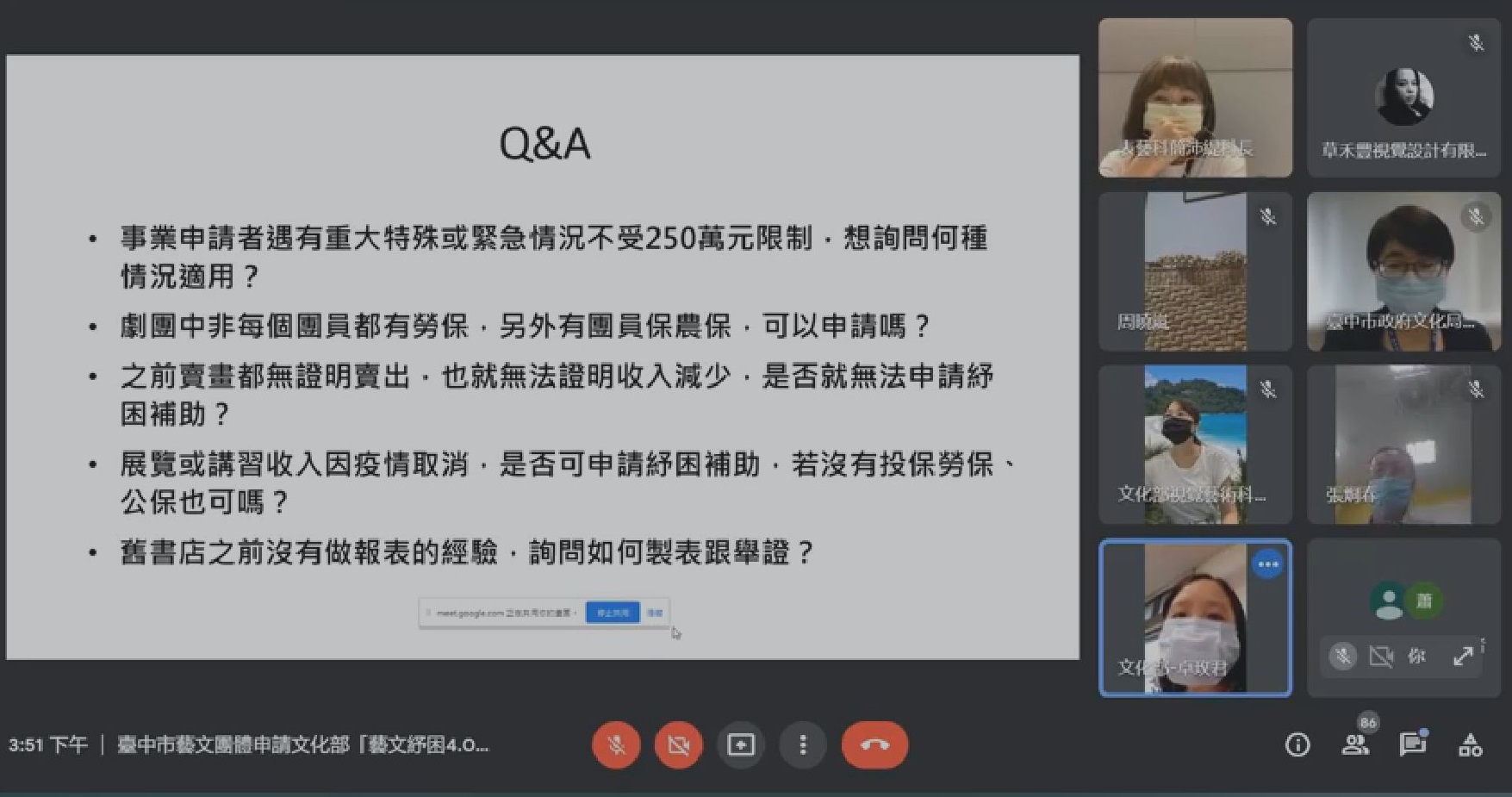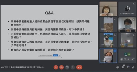 文化局舉辦藝文紓困線上說明會,吸引超過200位藝文工作者和事業單位即時參與