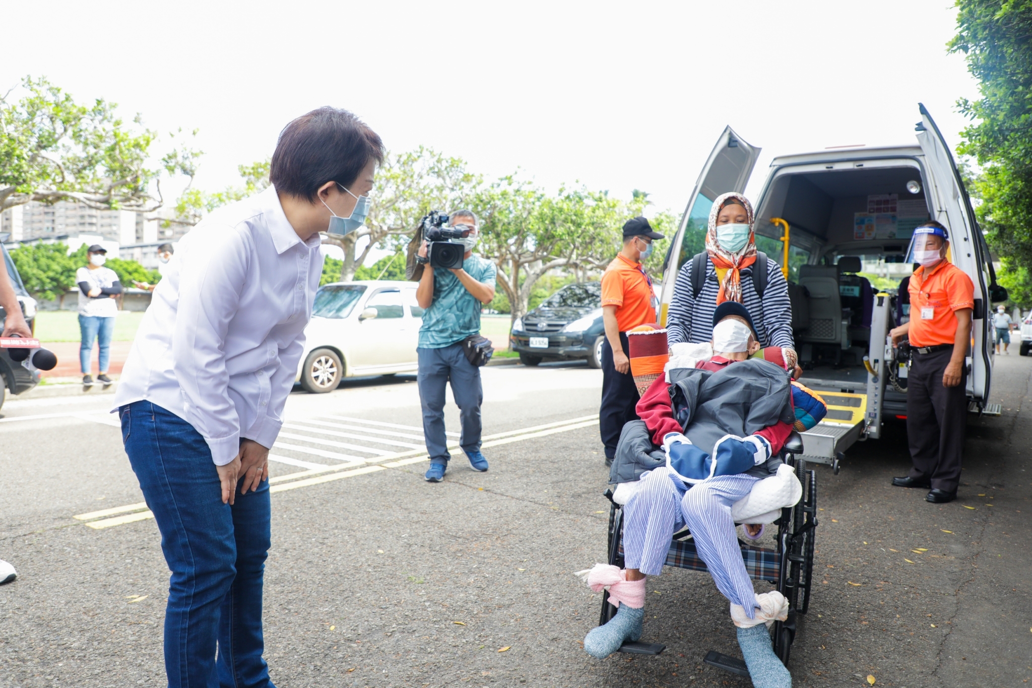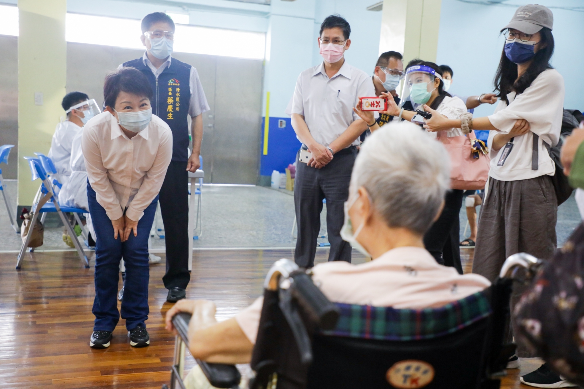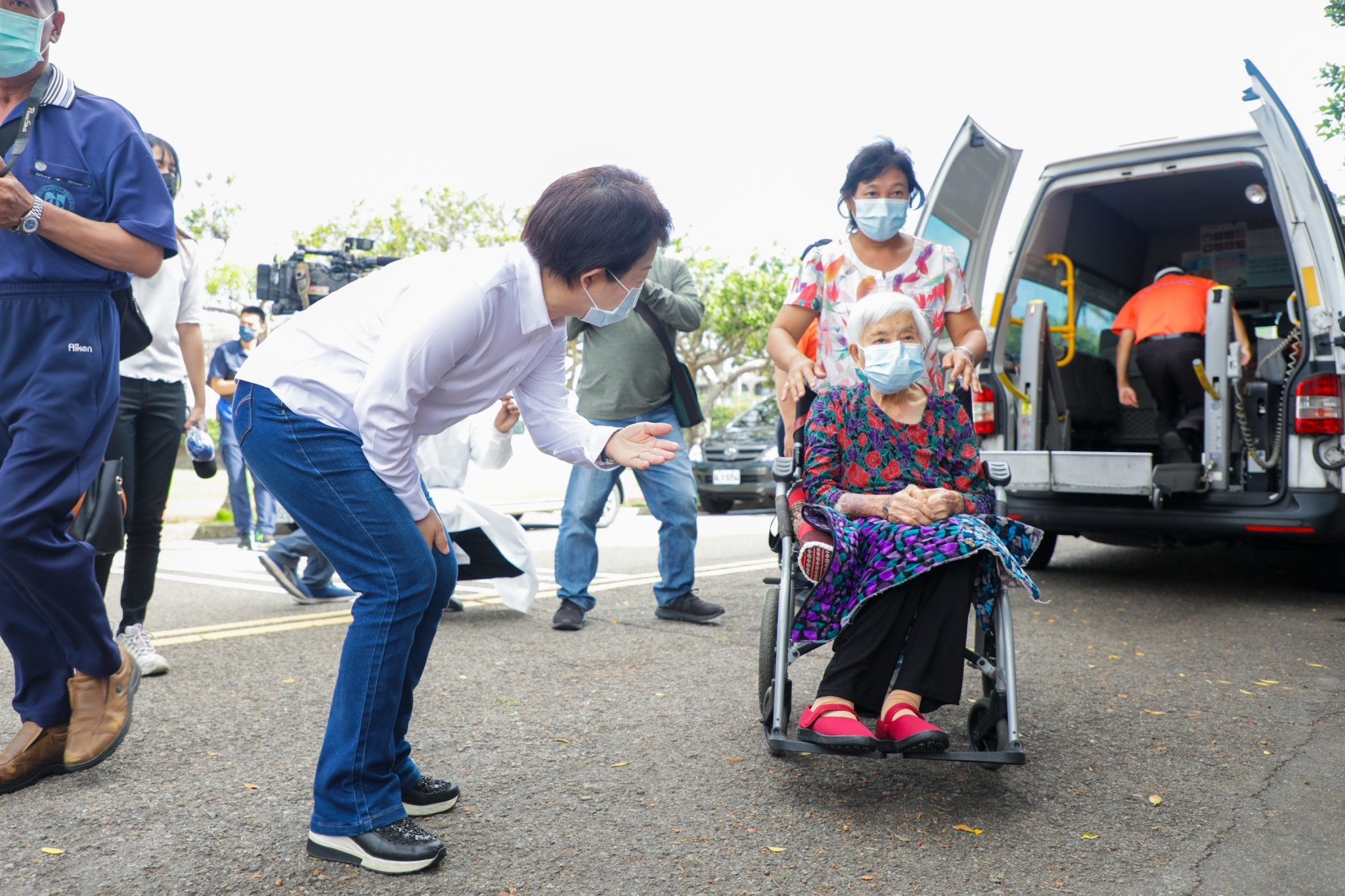 AZ疫苗從615日開放給85歲以上長輩施打後,今(17)日邁入第三天,市長盧秀燕一早便至清水國中疫苗快打站,視察復康巴士接送長者情形。盧市長指出,為讓接種疫苗更順利,社會局主動電話聯繫,協助已接獲疫苗施打通知的身障長輩免費預約復康巴士。今日90歲的李阿公和89歲的李阿嬤夫妻二人,從家中共乘一輛復康巴士到快打站,只花了十分鐘,稱讚復康巴士貼心又方便。
