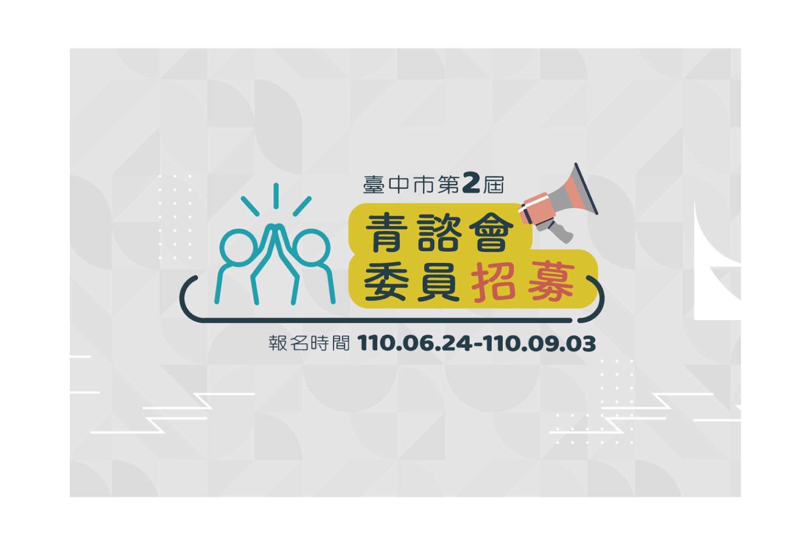 台中青諮會第二屆招募於今(24)日網路線上報名正式開跑!歡迎更多年輕朋友加入台中青諮委員的行列,將創新想法大聲說,一起讓台中更進步!