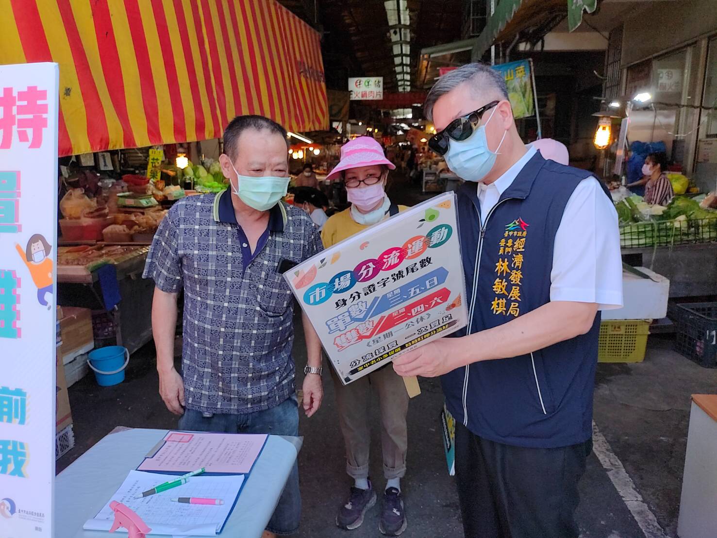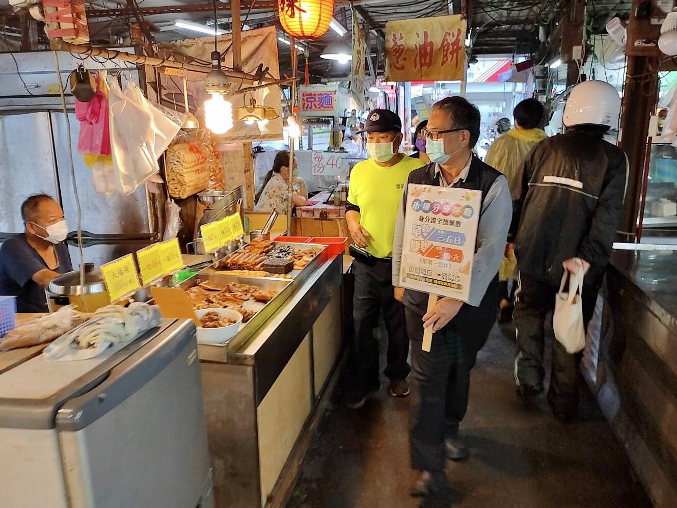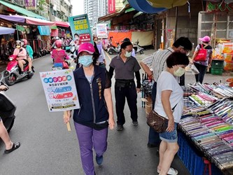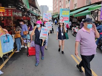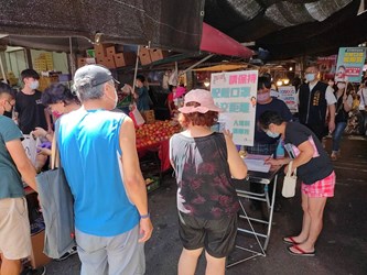 國內新冠肺炎疫情仍嚴峻,考量近日傳統市場出現採買人潮,台中市政府經發局自629日起連四天,由副局長李逸安、主任秘書倪世齡、專門委員林敏棋及謝公耀,分別帶隊至水湳、南屯、向上及水崛頭等傳統市場,加強宣導餐飲禁內用、市場分流運動、落實實名()制、環境清潔消毒、維持社交距離等措施;稽查時攤商及消費者口罩均戴好戴滿,顯見民眾高度防疫意識。