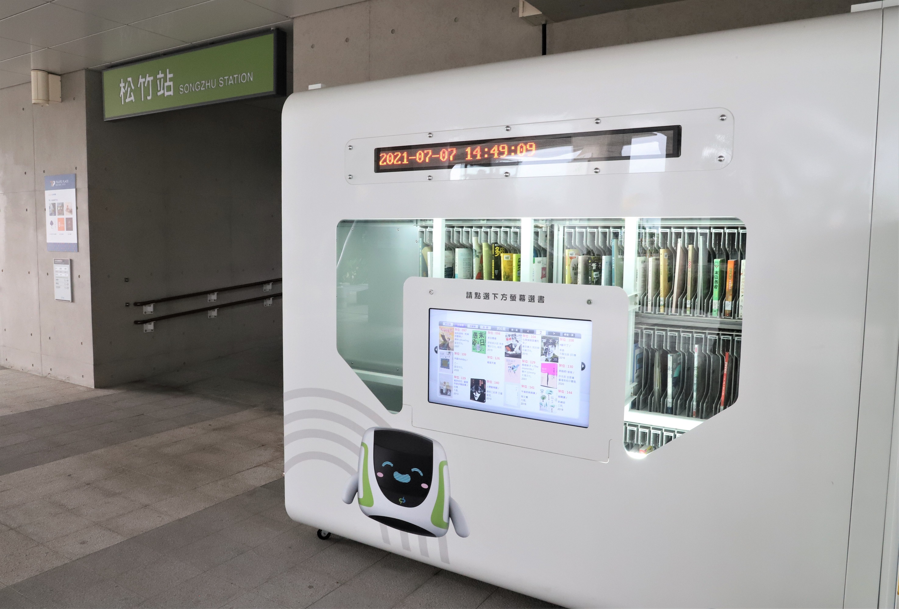 台中市首座「捷運自助借還書站」位於捷運松竹站2號出口。