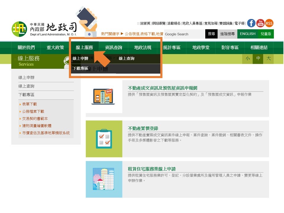 中正地政事務所主任林永成補充,地政線上服務除網上申領謄本以及土地建物參考資訊查詢外,內政部地政司(https://www.land.moi.gov.tw/)線上服務專區還有簡易登記案件申辦、線上聲明登錄等多項地政服務,有需求民眾也可多加利用。(7/12*14)*地政局