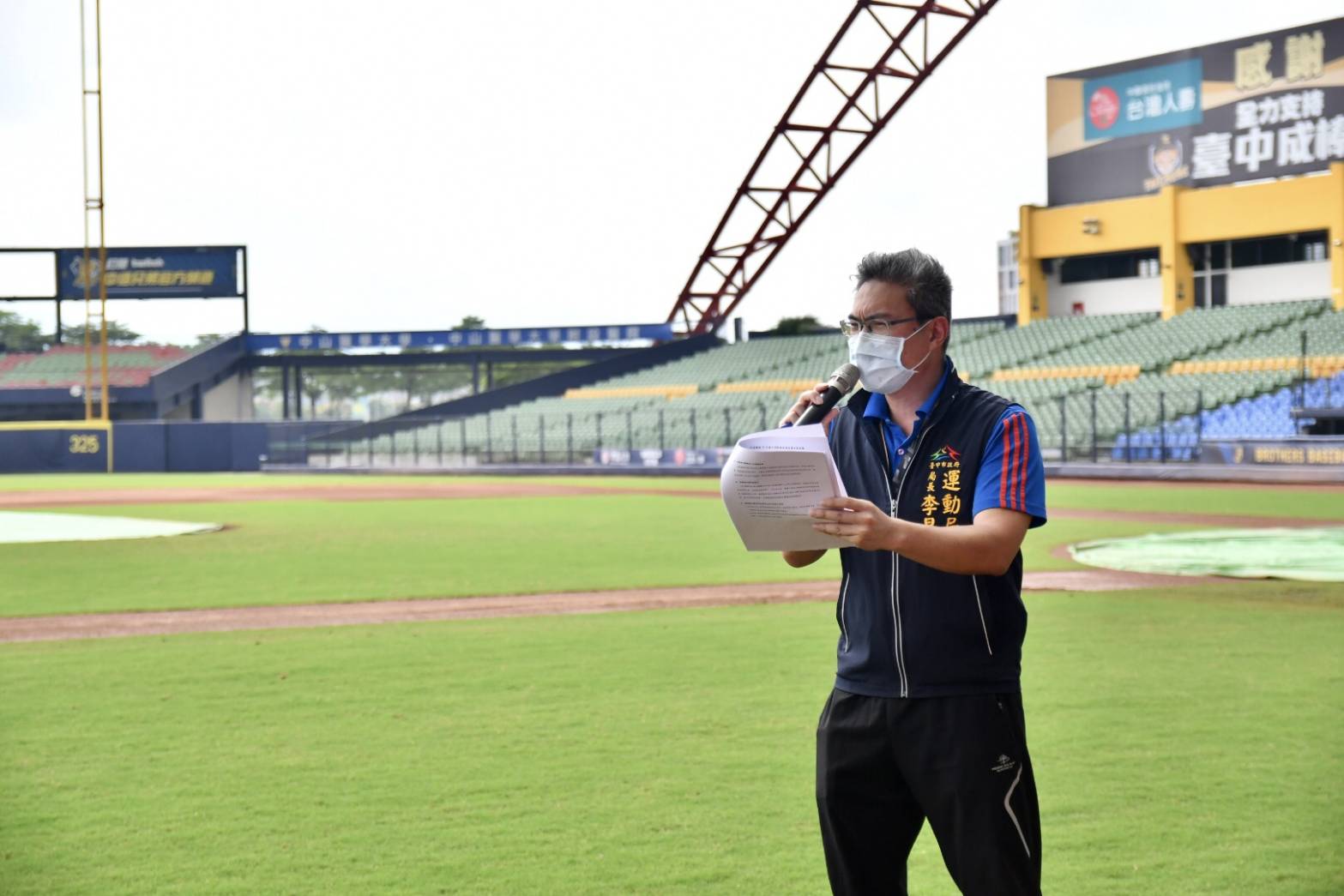 教育部體育署函文中華職棒大聯盟,在遵循中央流行疫情指揮中心建議下,有條件同意職棒恢復賽事,採不開放觀眾入場的「閉門賽」方式辦理,台中市長盧秀燕指示市府運動局在防疫最高原則下,盡量配合中華職棒復賽規劃。運動局長李昱叡今(12)日與中華職棒大聯盟會長蔡其昌及秘書長楊清瓏、衛福部中區傳染病防治醫療網指揮官黃高彬、球場營運團隊在洲際棒球場召開防疫會議、實地會勘,確保賽事落實防疫措施。