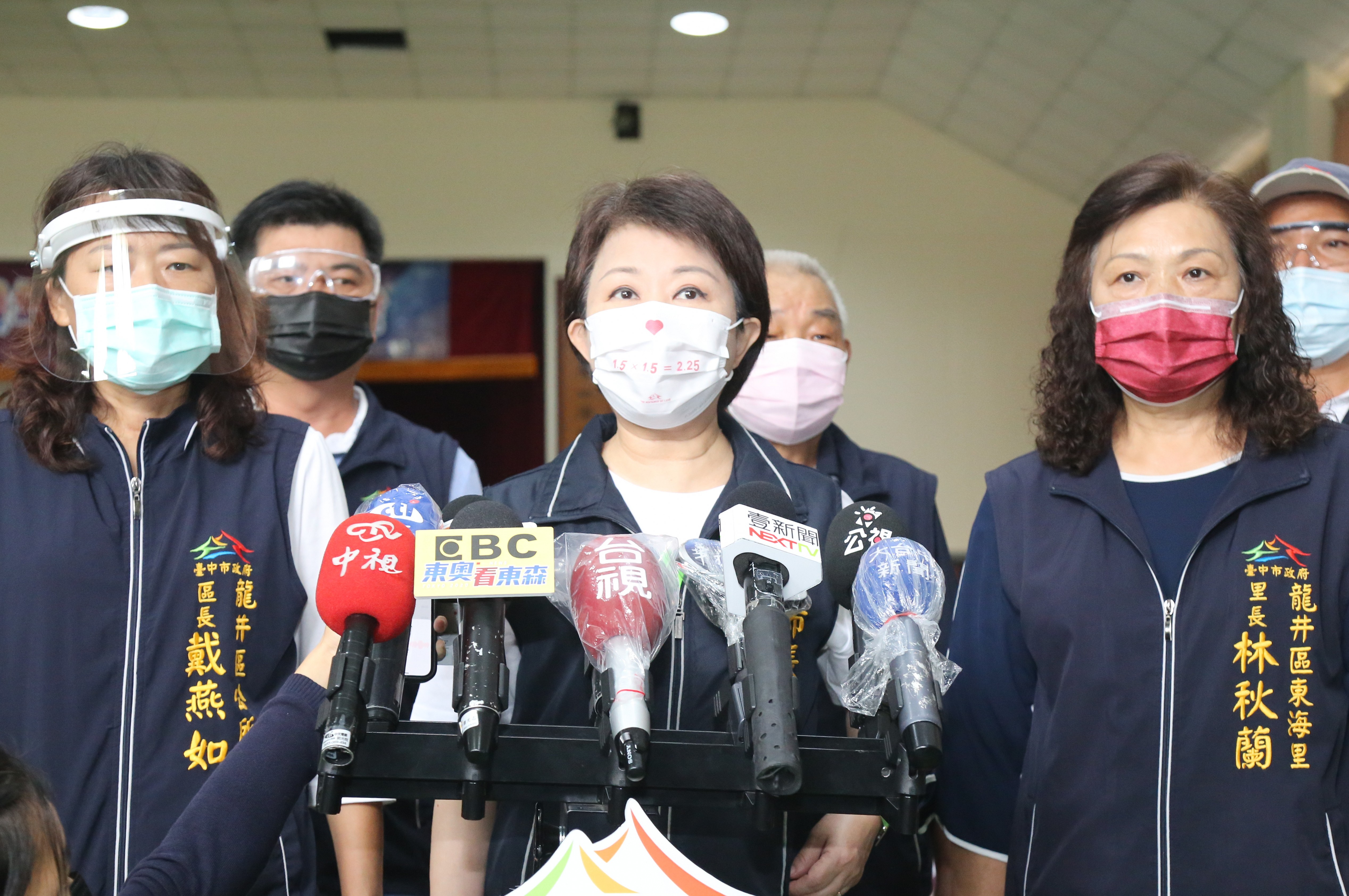 「唐鳳系統」第三輪昨日開打,台中共有159591人預約接種,台中市政府除配合規劃醫療院所接種外,今(24)日及2627三日更加開快打站,為預約民眾提供接種服務。市長盧秀燕今日前往龍井區龍峰國小快打站視察,她表示,烟花颱風逐漸北移,對台灣的影響減低,台中快打站今日照常開設為預約民眾提供接種服務,感謝所有防疫同仁的努力,不畏風雨提供市民優質服務。