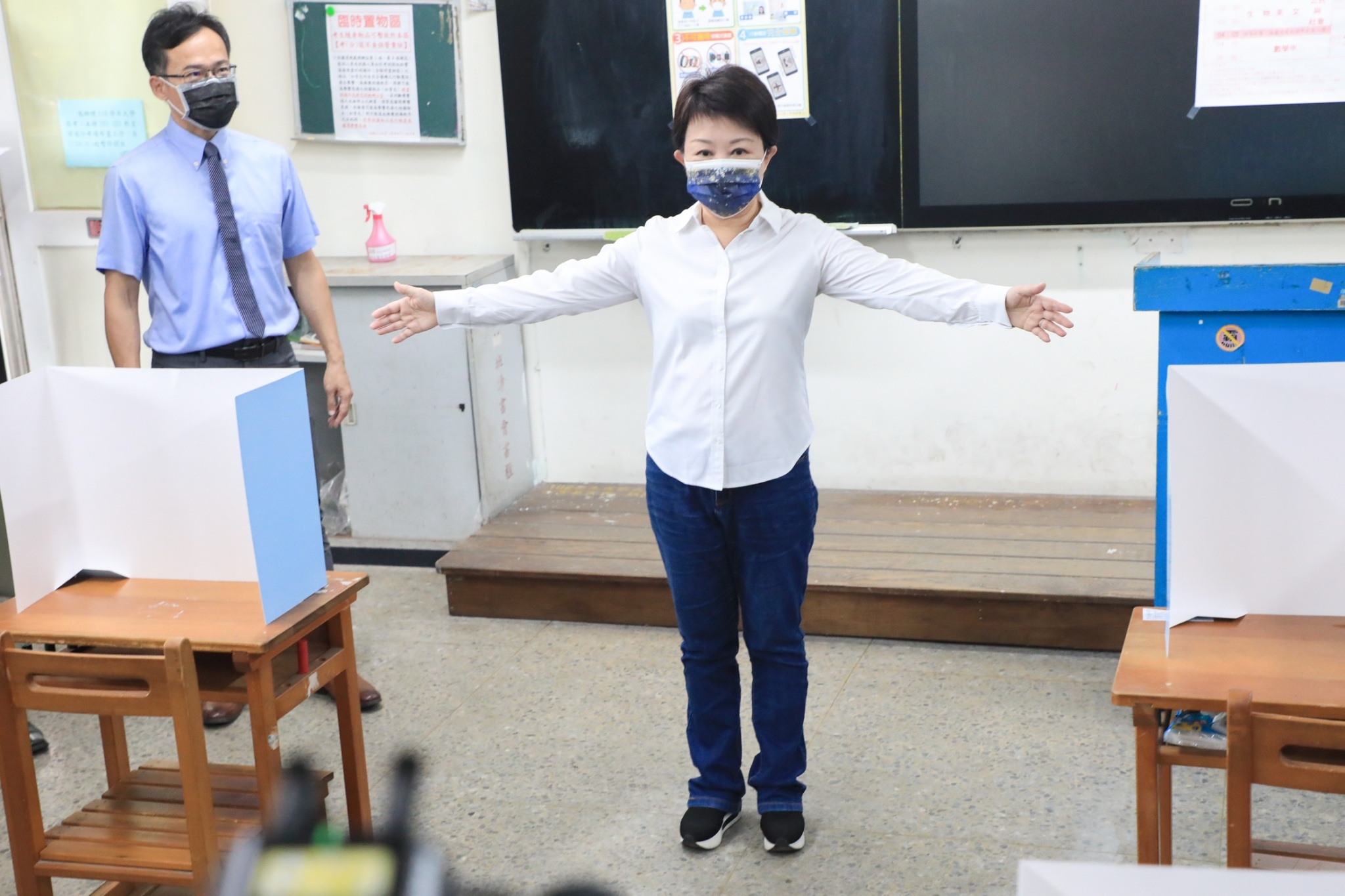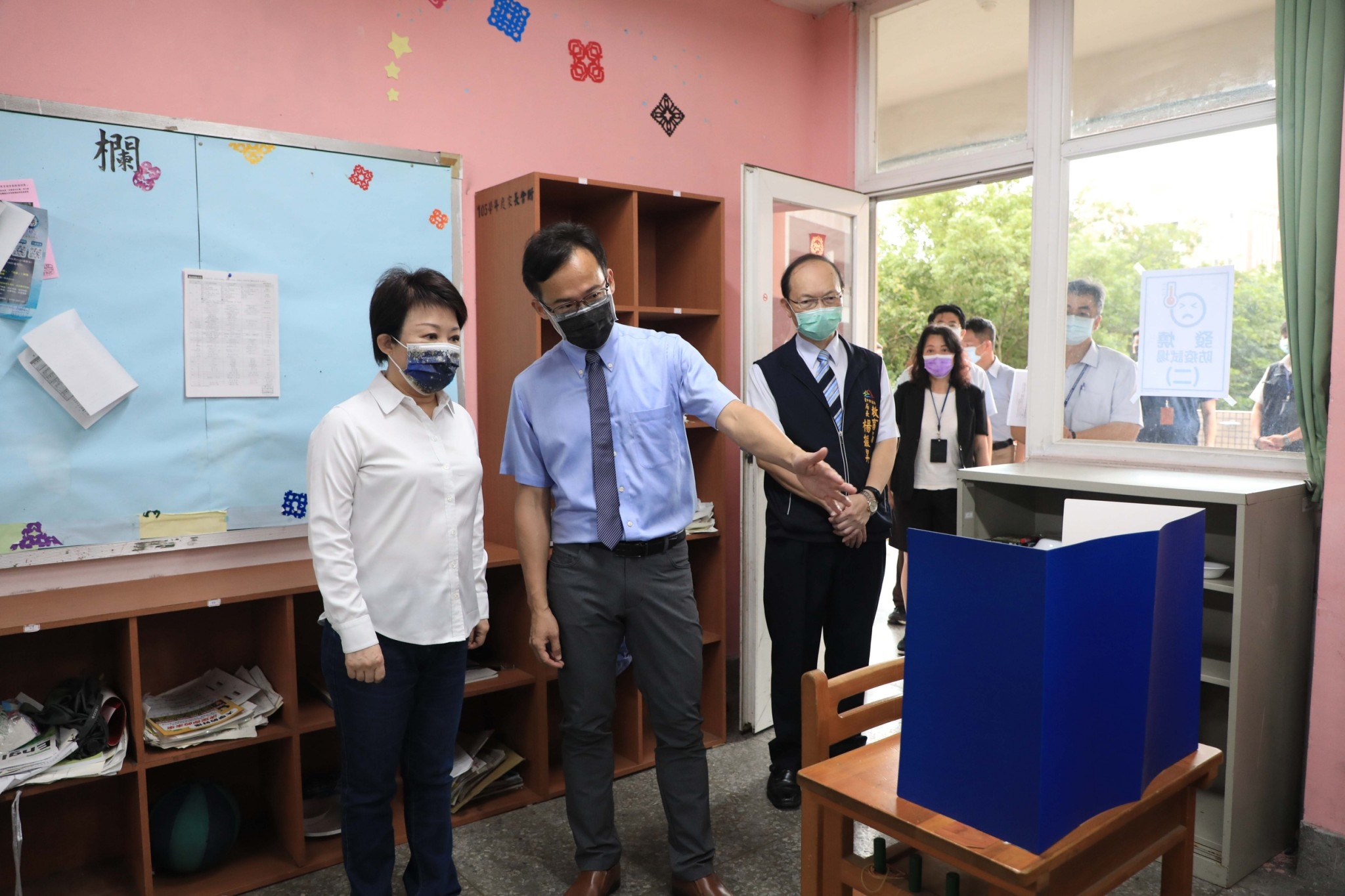 市長盧秀燕今(26)早前往台中一中關心考場防疫工作
