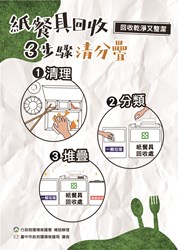 環保局呼籲,消費者用餐後響應回收3步驟「清理、分類、堆疊」,簡單回收步驟就可減少回收人員的辛勞;另因紙餐具內層有塑膠淋膜,交付回收業者或清潔隊回收時,請與一般紙類(如報紙.紙箱)分開回收,落實分類,一同減少廢棄物產生,為環保盡一份心力。