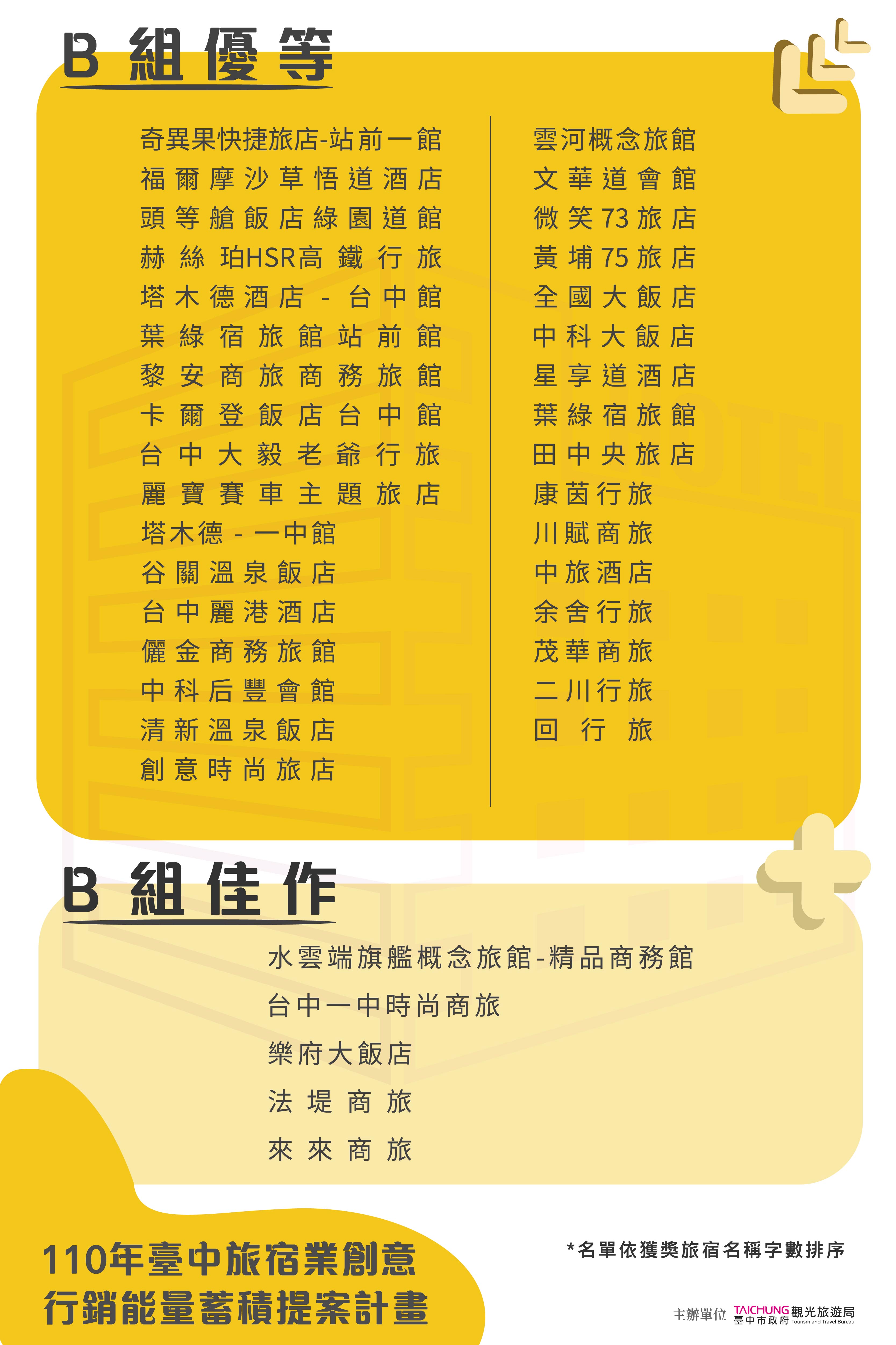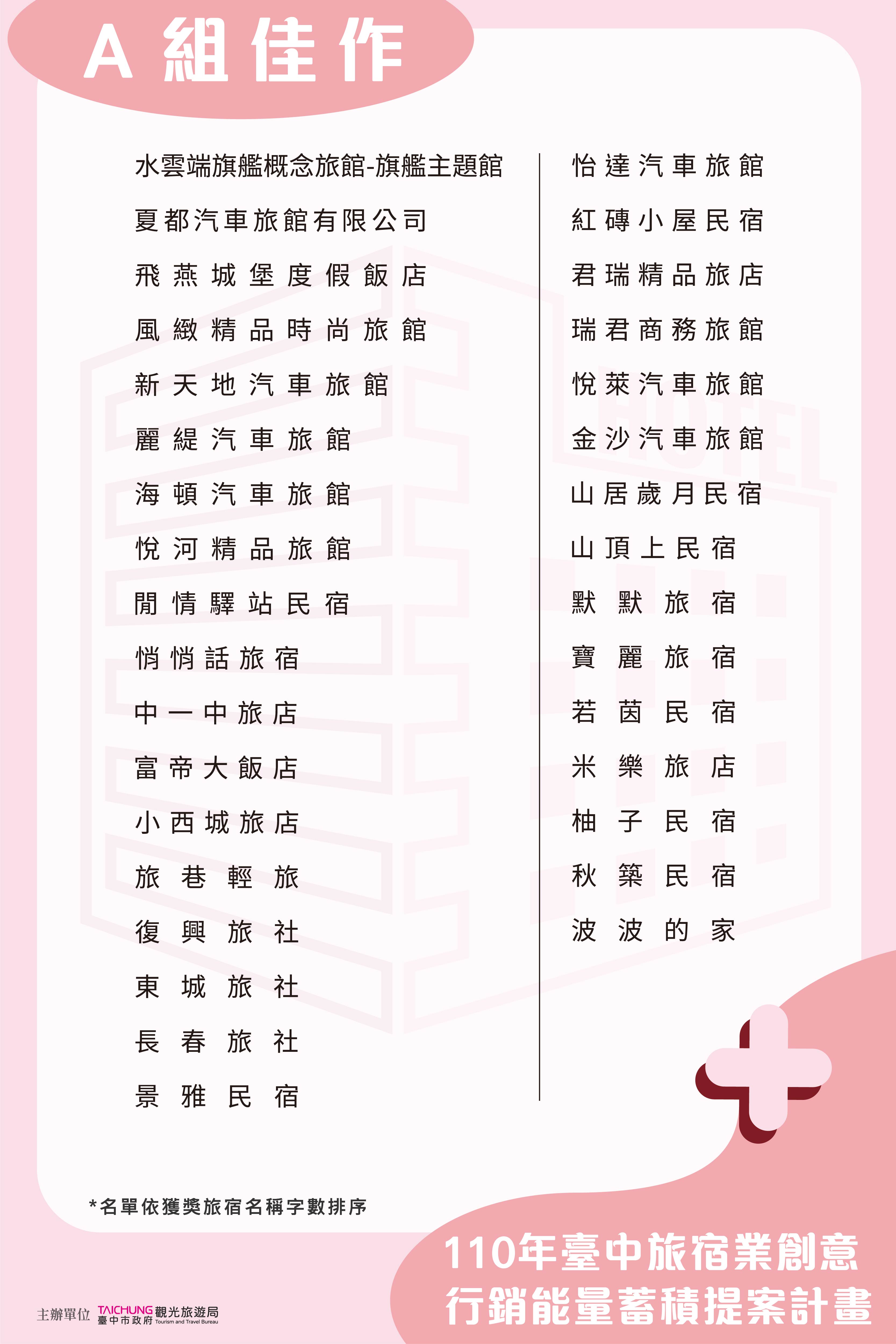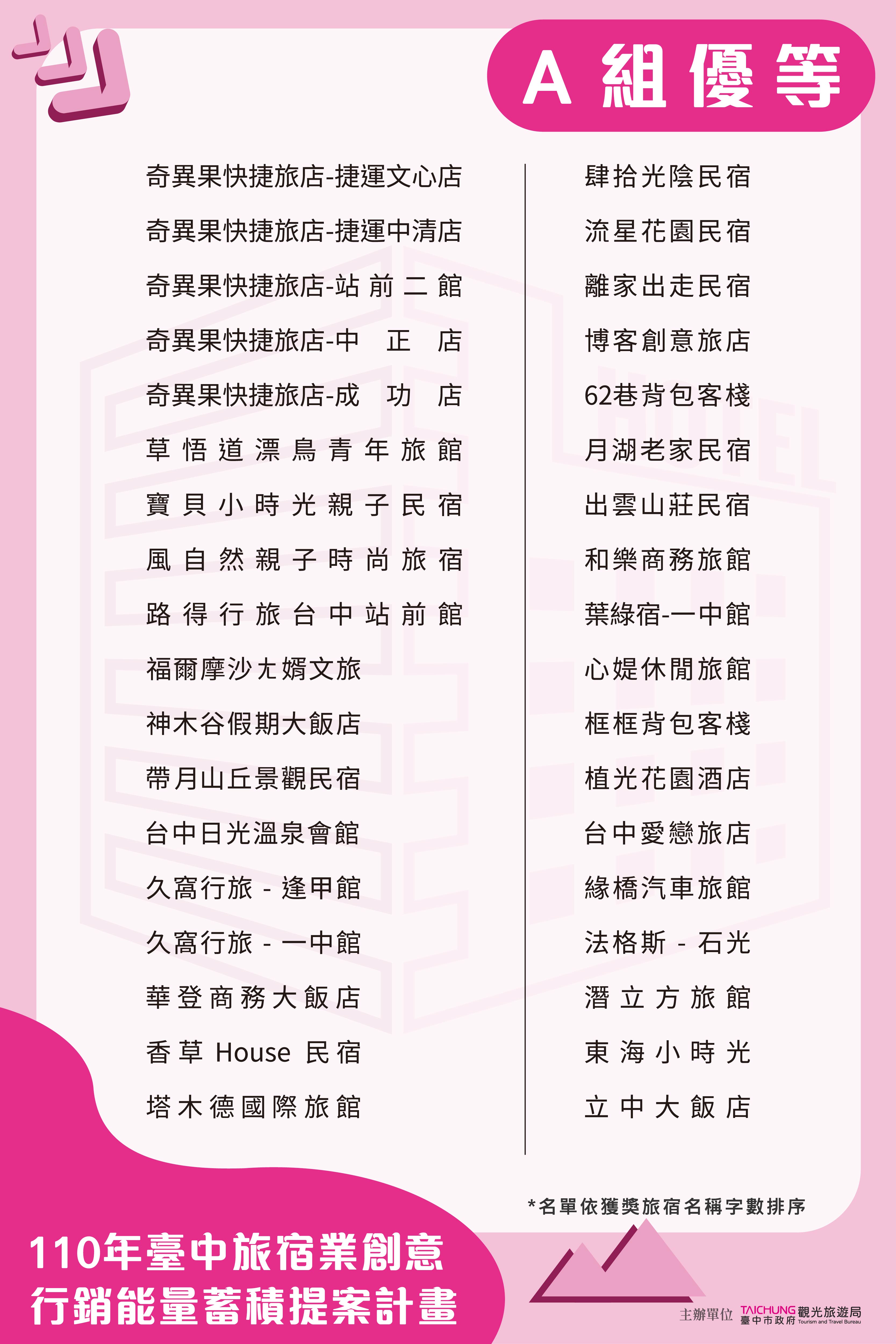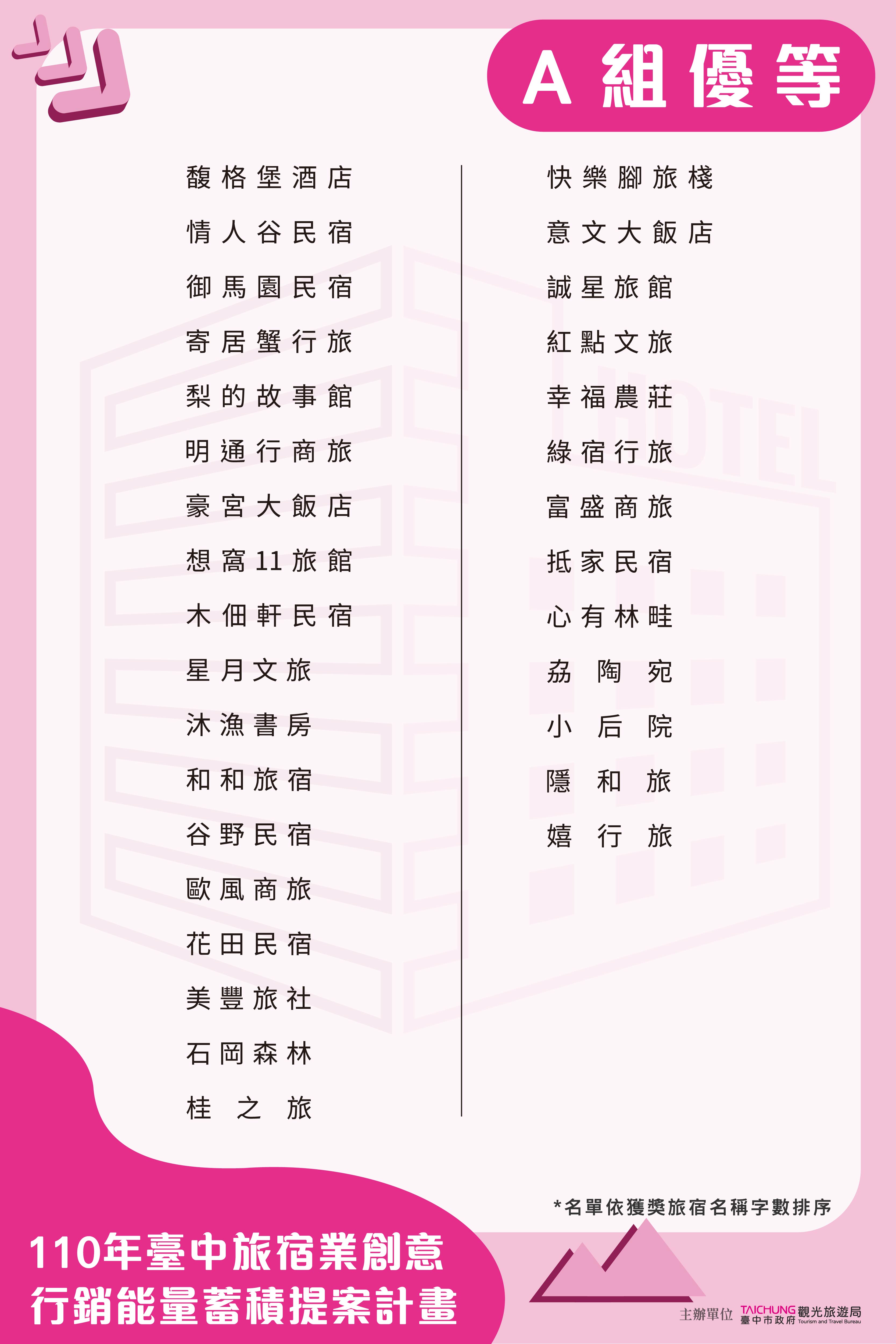 旅宿業創意提案計畫得獎名單出爐  中市府再推專業諮詢服務