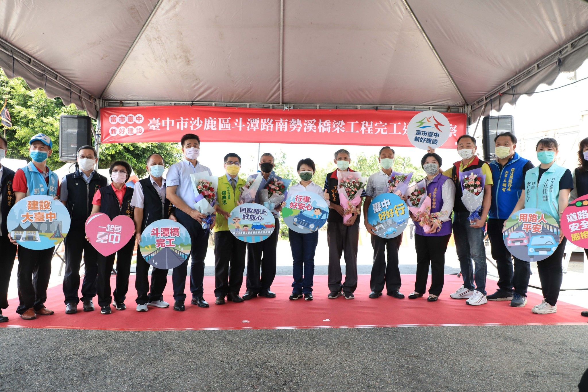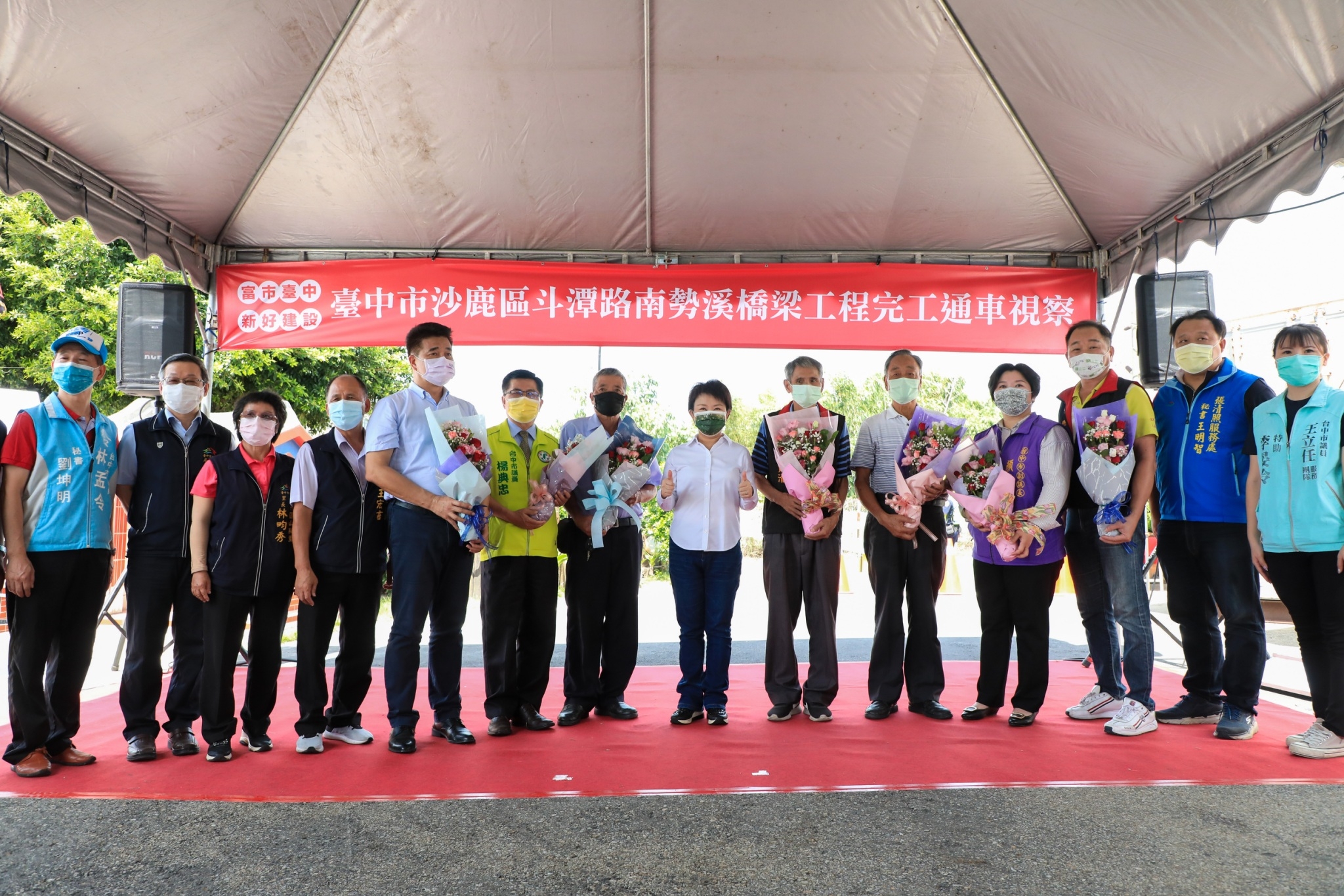 今日通車視察典禮,包括盧市長、建設局長陳大田、市議會副議長顏莉敏、市議員楊典忠、陳廷秀、沙鹿區長廖財崇、龍井區長戴燕如均到場共襄盛舉,另市議會議長張清照、市議員王立任、林孟令、陳世凱也派代表到場致意。(8/11*7)*建設局