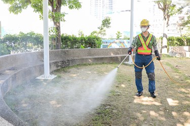 教育局表示,市府持續以「台中校園零個案、零傳染」為目標,除要求各校加強開學前後防疫工作,盤點所需防疫物資外,教育局也加速核定補助學校防疫物資經費,採購午餐隔板、口罩酒精、快篩試劑等必要物資;並要求各校開學前利用多元管道向師生宣導防疫措施,務必配合佩戴口罩、勤洗手、保持社交距離、實聯制等防疫措施。今日校園清消包括教育局長楊振昇、環保局長陳宏益等也到場一同視察。(8/20*18)*教育局