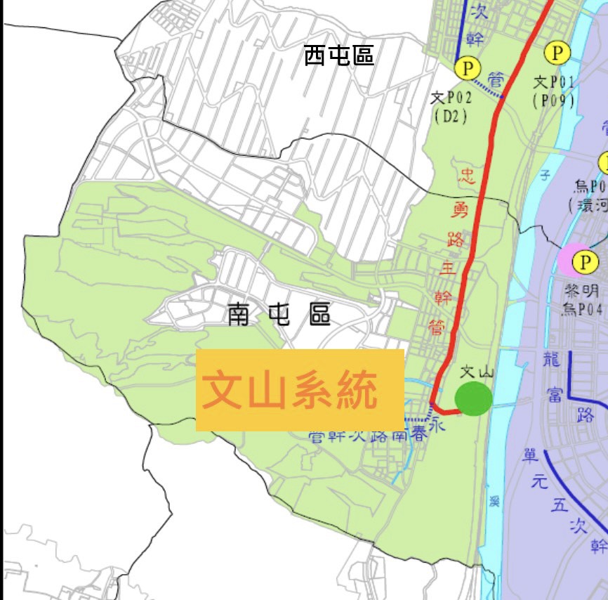 由於文山系統建設範圍廣,重劃區等既有管網大多位於西屯區,其管線可直接接入主幹管,故西屯區部分區域可先完成用戶接管。南屯區將於111年起爭取佈置分支管網經費,已提報納入系統實施計畫內,並已向中央爭取相關經費,待中央同意後將立即展開南屯區污水下水道用戶接管建設。目前執行中的委10第10分標用戶接管工程,亦有辦理南屯區大業里部分區域的用戶接管,送至福田水資中心處理。(8/21*18)*水利局