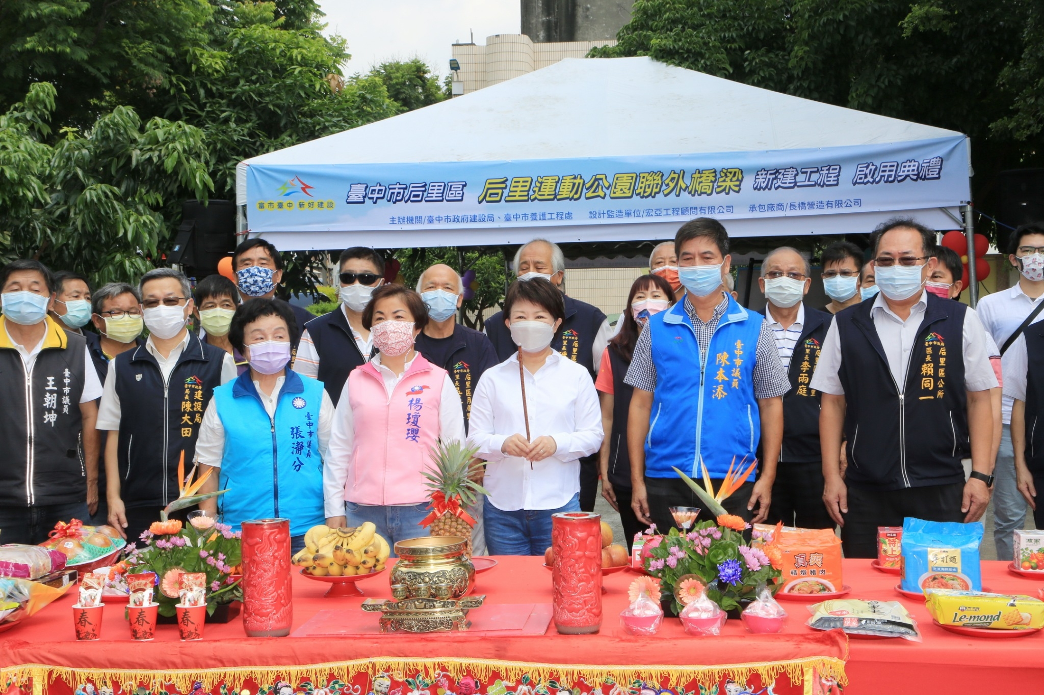 今日橋梁啟用儀式包括建設局長陳大田、后里區長賴同一、立法委員楊瓊瓔、市議員張瀞分、王朝坤、陳本添及多位后里在地里長均到場共襄盛舉,市議員陳清龍服務處代表也到場致意。(8/25*7)*建設局