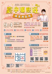 台中現場徵才活動「台中那麼旺」就業博覽會預計於9月4日在台中市政府前廣場熱鬧登場,勞工局表示,活動將設置5大特色招募專區,邀集國內外63家企業,提供逾3,200個職缺,現場更預計與丹麥、英國、德國、荷蘭等跨國風能大廠簽訂合作宣言,優先提供經常性薪資達到4萬元以上高薪職缺予台中市民,歡迎具求職、轉職需求民眾踴躍參加。