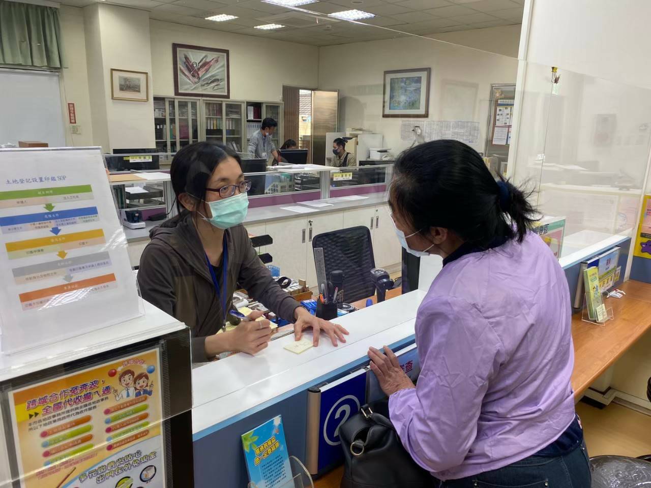 台中市地方稅務局東勢分局與東勢地政事務所合作,為東勢山城高齡人口服務,民眾在東勢地所辦理土地繼承登記時,若土地上建物是未登記建物房子,地政人員除主動告知民眾至地方稅務局辦理房屋稅籍異動外,並於辧畢土地繼承登記後,將資料移送地方稅務局東勢分局協助民眾辦理房屋稅籍異動,保障民眾繼承財產權益。