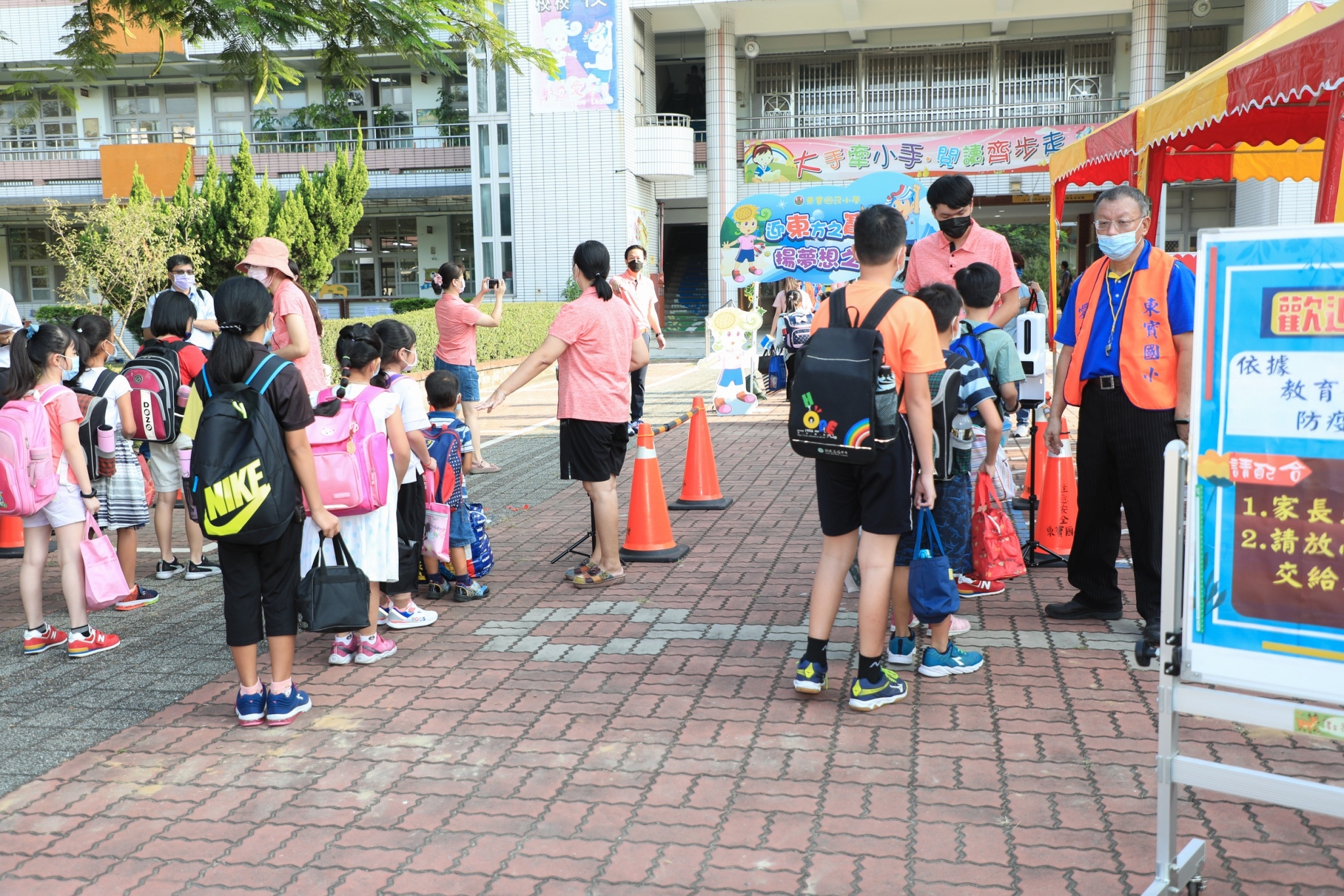 盧市長表示,台中是全國第二大城,全市約有30幾萬名學生今日返校,由於目前仍在疫情警戒二級期間,市府與各校總動員整備防疫措施,事前做好演練及規劃,校園也已完成各項清消工作,並採人潮分流入學,比如東寶國小讓小二生到小六生於7時40分前入校;幼兒園則於7時40分至8時間入校;小一生則規劃8時20分以後上學。