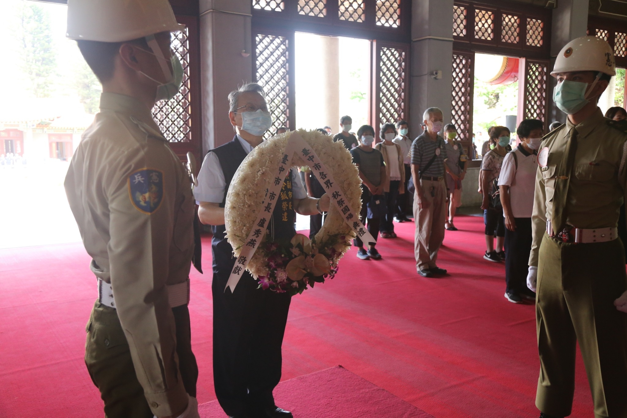 今日國殤典禮,北區忠烈祠由市府參事施德明、民政局副局長周瑺玫、秘書處副處長李政峯、消防局副局長戴峻焜、經發局副局長李逸安、交通局副局長江俊良、環保局副局長陳政良、人事處副處長粘榮祥、交通部台灣鐵路管理局副局長馮輝昇、台中市後備指揮部指揮官邱孟俊等人陪祭,台中市議會副議長顏莉敏、市議員陳文政、賴佳微也派員到場致意。