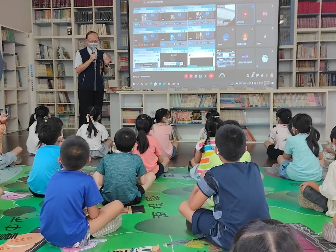 教育局長楊振昇今日也化身為超級直播主及說故事爸爸,在圖書館為孩子講繪本故事「地震了!這個時候該怎麼辦?」。楊局長透過繪本閱讀,讓學生學習「以判斷原則的教育取代標準答案的訓練」與「讓防災成為一種生活態度」。他也與聽故事的小朋友們,演練當地震發生時,一起採取抗震保命三動作「趴、掩、穩」就地掩蔽。