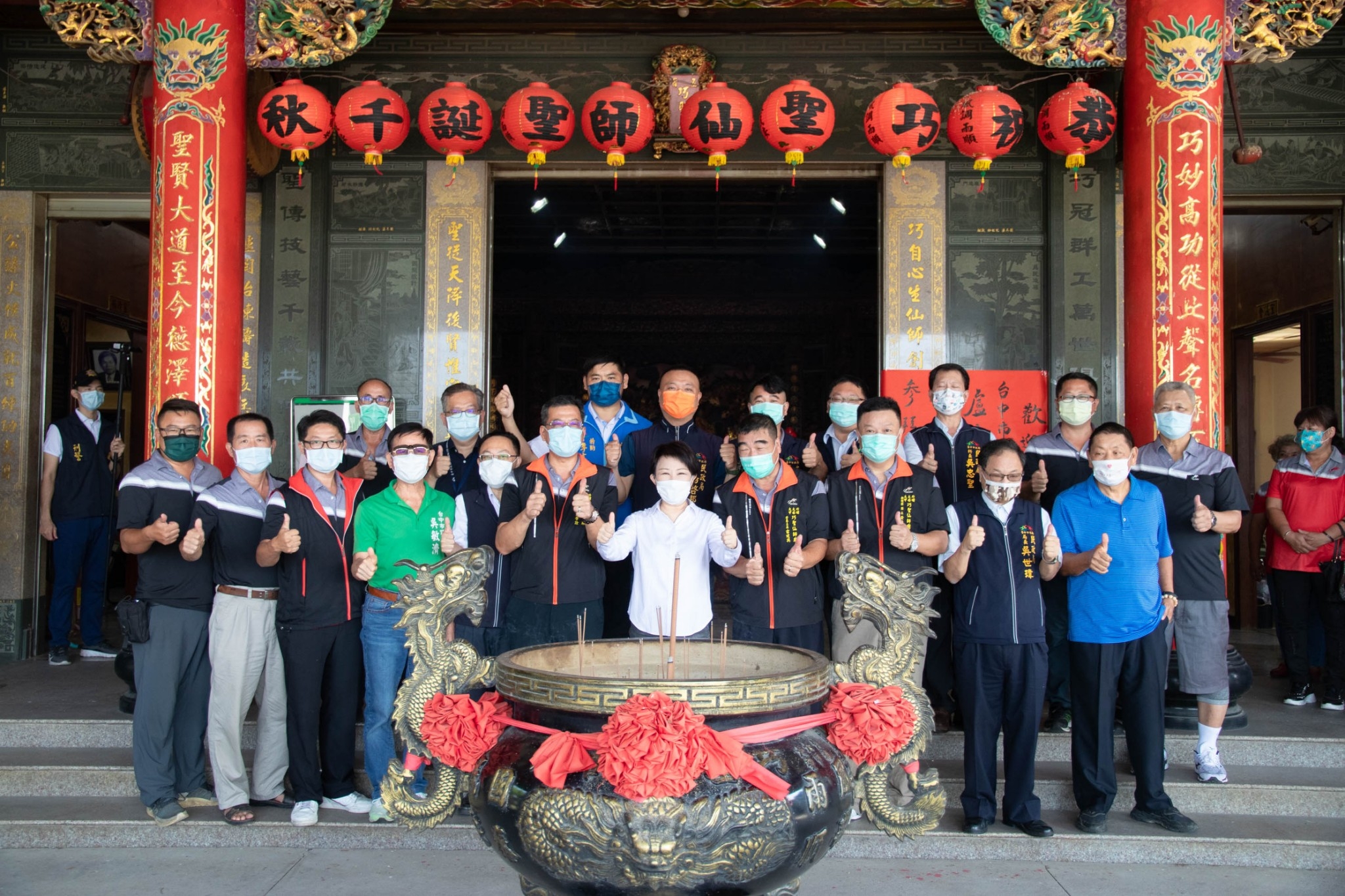 台中市大安區政天宮、巧聖仙師廟致力於公益慈善及社會教化等事業,為當地重要宗教信仰中心,深受地方肯定。台中市長盧秀燕今(18)日前往頒贈「護國佑民」、「宏揚巧藝」匾額予政天宮及巧聖仙師廟,感謝廟方慈悲濟世,長期護佑鄉里,同時參拜祈求國泰民安、風調雨順。