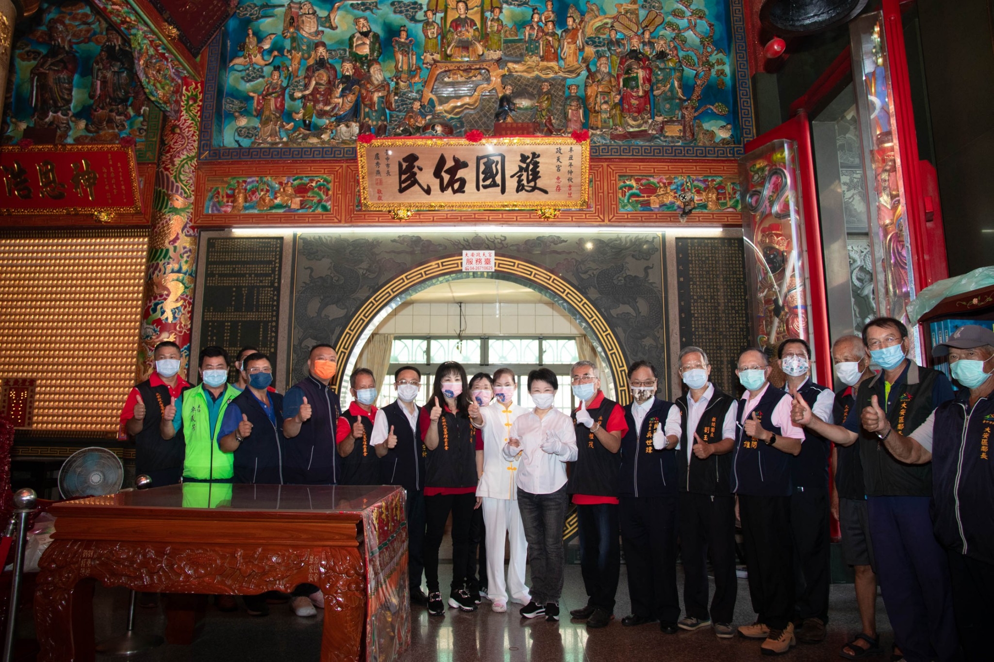 今日政天宮、巧聖仙師廟揭匾儀式,盧市長、民政局長吳世瑋、專委洪紹欽、市議員李榮鴻、吳敏濟、大安區長許宏綺,及政天宮主委黃種茂、巧聖仙師廟主委吳學詮、中庄里長莊明堯、福興里長林正岳、大甲區德化里長李柄杉等人皆出席。(9/18*18)*民政局