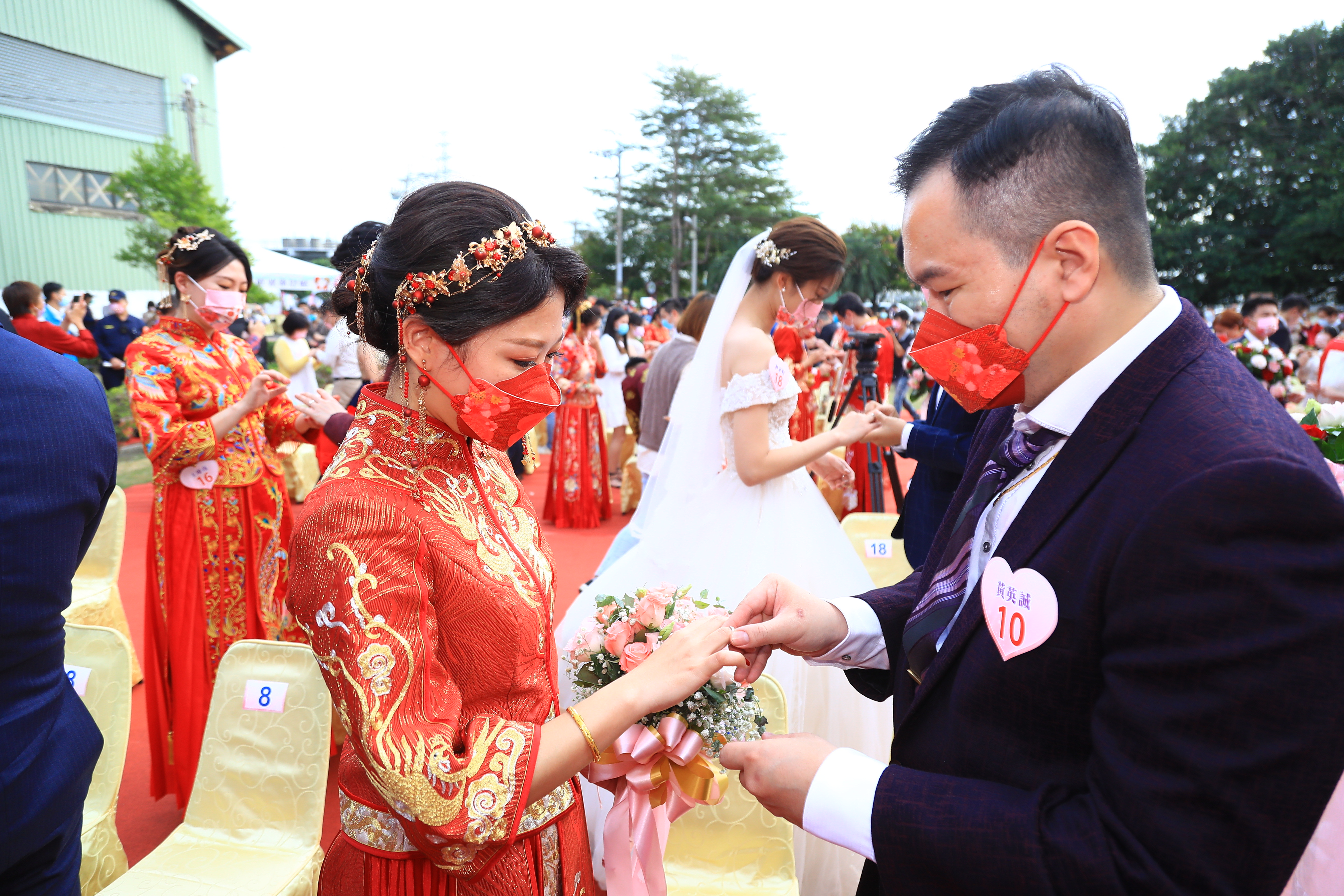 民政局長吳世瑋表示,過去一年多來,大家生活籠罩在疫情之下,造成許多的不方便,很慶幸在市民朋友共同努力下,攜手度過最艱難的時刻,平安跟健康成為平凡卻最重要的願望,市府特地贈送每對新人「大肚-成功」幸福車票吊飾以及夫妻對章,結合活動在地地名「大肚」,為各位新人帶來祝福,期許早日為家庭增添新成員,為台中市注入生力軍,一同打造有活力的幸福台中。