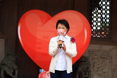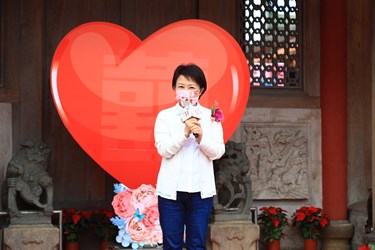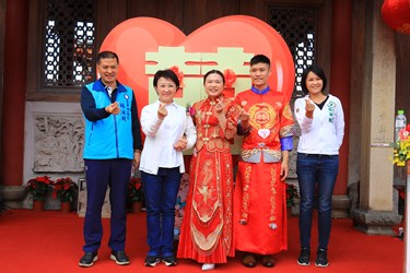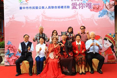 110年台中市市民暨公教人員聯合婚禮今(27)日在大肚「磺溪書院」舉行,以古式婚禮為主題,60對新人精心裝扮,搭配白馬與花轎進場,結合百年書院古色古香氛圍,讓新人留下難忘回憶。市長盧秀燕以主婚人身分出席,帶領新人宣讀結婚宣言,也提醒因為愛「莫忘初衷」,市府結合活動在地地名「大肚」,祝福新人「大肚成功」早生貴子,為台中市注入生力軍。
