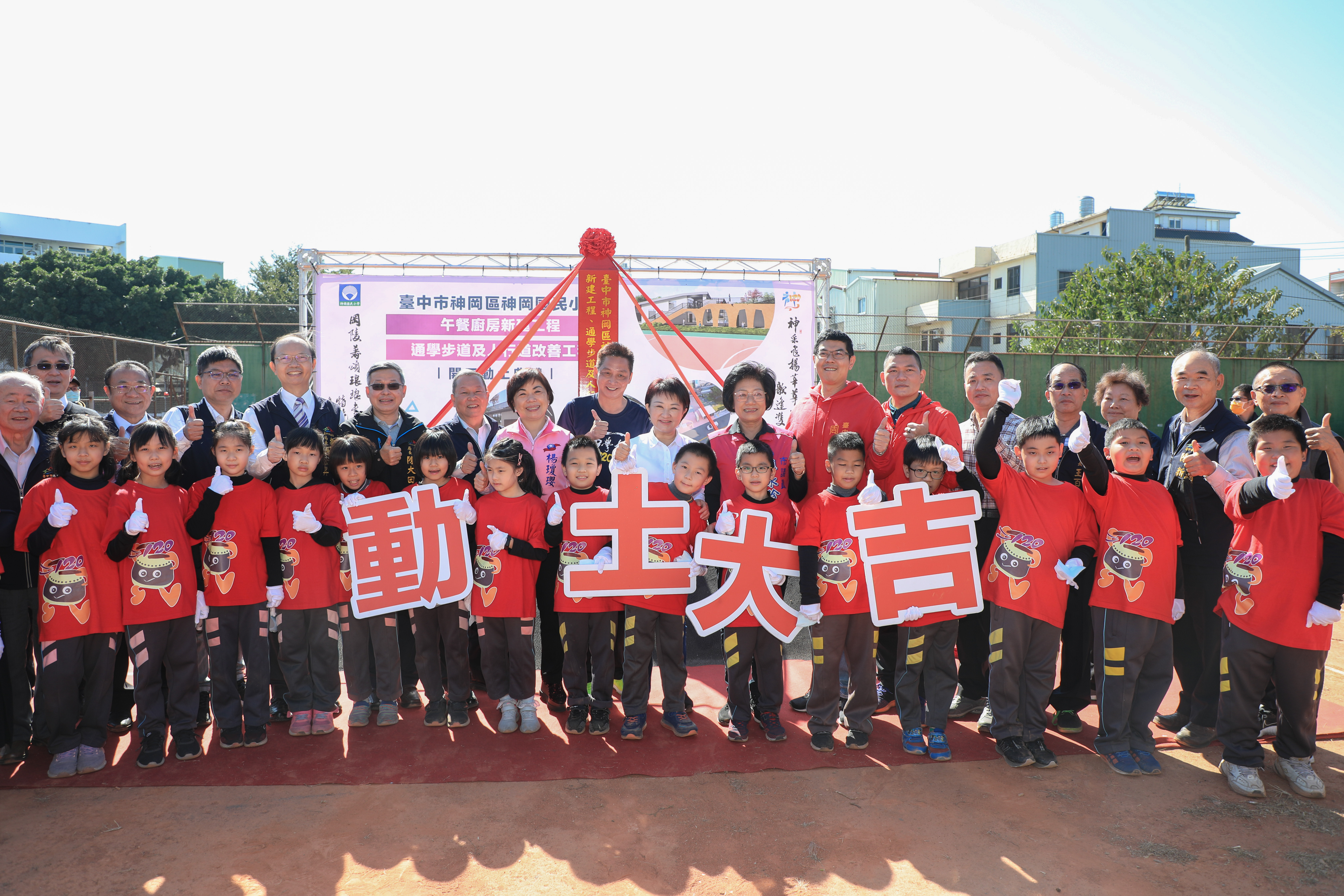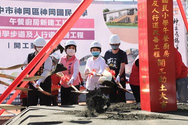 台中市神岡區神岡國小午餐中央廚房新建工程,以及周邊通學步道與人行道改善今(4)日舉行動土典禮,市長盧秀燕前往神岡國小與地方人士共同見證學校新的里程碑。她表示,3項工程經費共約7,000萬元,感謝民代協助向中央爭取補助,完工後將可提供神岡區學童良好的校園午餐供應環境,以及提供師生及周邊居民安全「行」的環境。