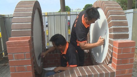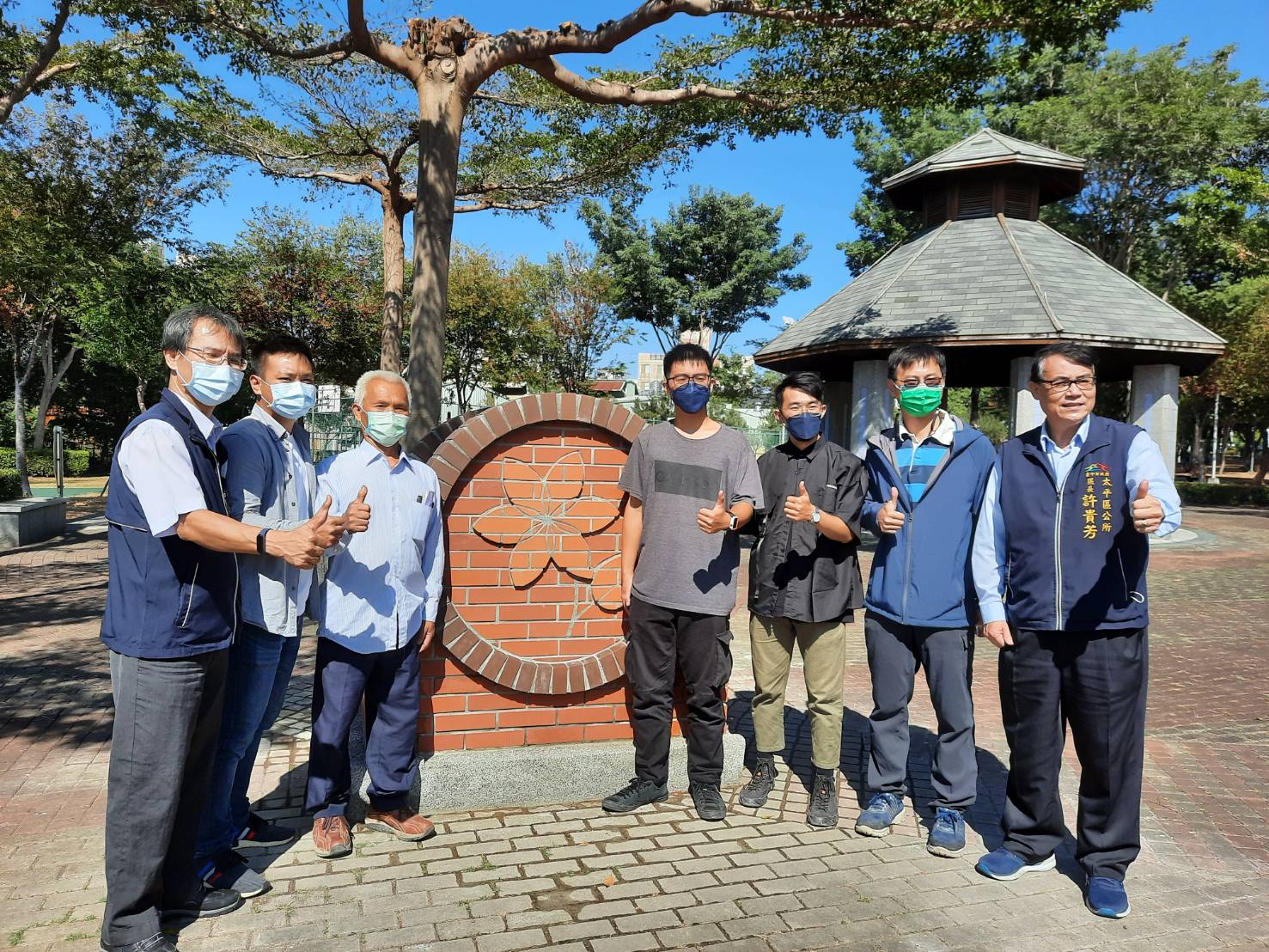 勞工局指出,去年藝術砌築職類獲獎的師生檔「台中高工黃文才老師、李冠彬」;師徒檔「成莊工程行黃連成師傅、賴聖賢」;父子檔「大台中泥水職業工會監事會召集人蔣原福、蔣昇光」三組職人及新秀,在太平區八德公園合力完成砌築作品「薪火相傳」花台,從設計、施作、鋪貼磁磚、抿石子等皆一手包辦,作品融入蜜蜂及花卉意象的設計巧思,結合在地農產特色,營造打卡新亮點。