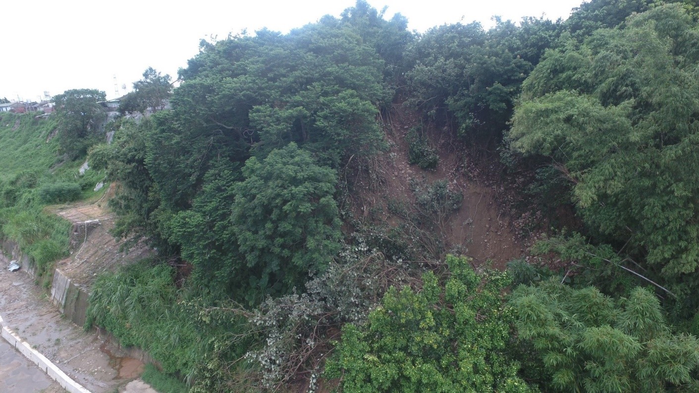 水利局表示,去(110)年盧碧颱風8月過境,連續幾日大雨造成外埔區長生路294號後方邊坡崩塌,影響附近20餘戶住宅,大量土石方及雜木滑落使下方農路無法通行,水利局在第一時間接獲通報後隨即派員辦理現場勘查,於最短時間先行清除土石方及雜木恢復農路通行,並待雨勢減緩後加速辦理災後復建工程。