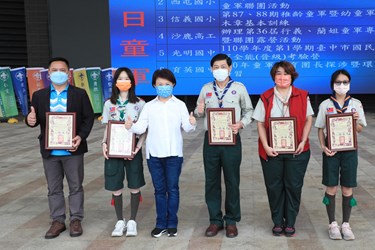 今日除了表揚全國評定的績優童軍團,市府教育局也頒發感謝狀,感謝承辦活動及服務績優的學校與單位,並頒獎表揚187位國花級章、長城級章、獅級章等晉級獎章和全國優秀童軍獎章等獎項的優秀童軍,肯定他們的努力與付出。