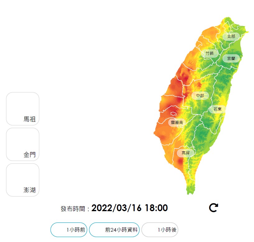 台灣西半部昨(16)日起受環境風場影響,全台西半部空品較差,多為空品不良橘色提醒,台中以南地區甚至有紅色警示等級,提醒市民減少非必要戶外活動,減少不適症狀;正值全台應變動員減污期間,中火居然捨身其外,沒有進行減污,甚至提油救電污染再增加,將7部非檢修中的燃煤機組幾乎滿載操作外,更在昨日下午4時再啟動較高污染的燃油機組,讓中南部空品不良情境更加惡劣,台中市政府呼籲中央要落實環保正義,兌現中火「減煤減排方案4.0」。