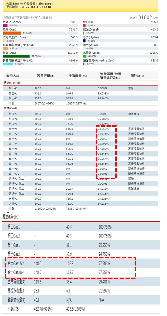 環保局長陳宏益進一步說明,在303興達事件後發現,中火救援滿載發電情況越來越常發生,只要台灣電力一旦發生缺口,不僅燃煤機組滿載發電,連備用燃油機組也將併聯使用,可預見,即便燃氣機組上線,若不強迫要求中火拆除舊有的備用機組,將可預見火力全開情境。
