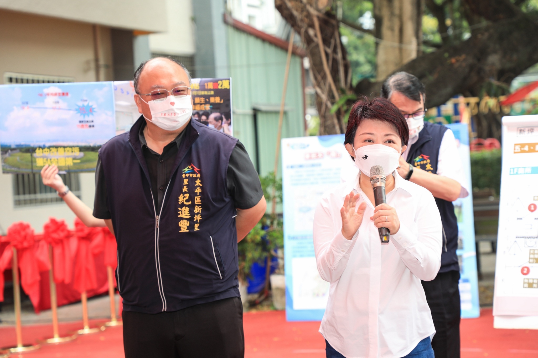 太平區長許貴芳說明,新坪新吉新城里活動中心於78年建成,2層樓總面積560平方公尺,使用迄今已逾30年,廳舍設施多處待改善,感謝市府挹注經費,包括頂樓(含梯間)防水、內外牆改善、廁所設施更新、一樓大門口新設斜坡道、戶外廣場地磚整平及景觀綠美化等,啟用後公所將持續推展各項社區化福利服務,促進社區發展及凝聚居民向心力,提升活動中心使用率。