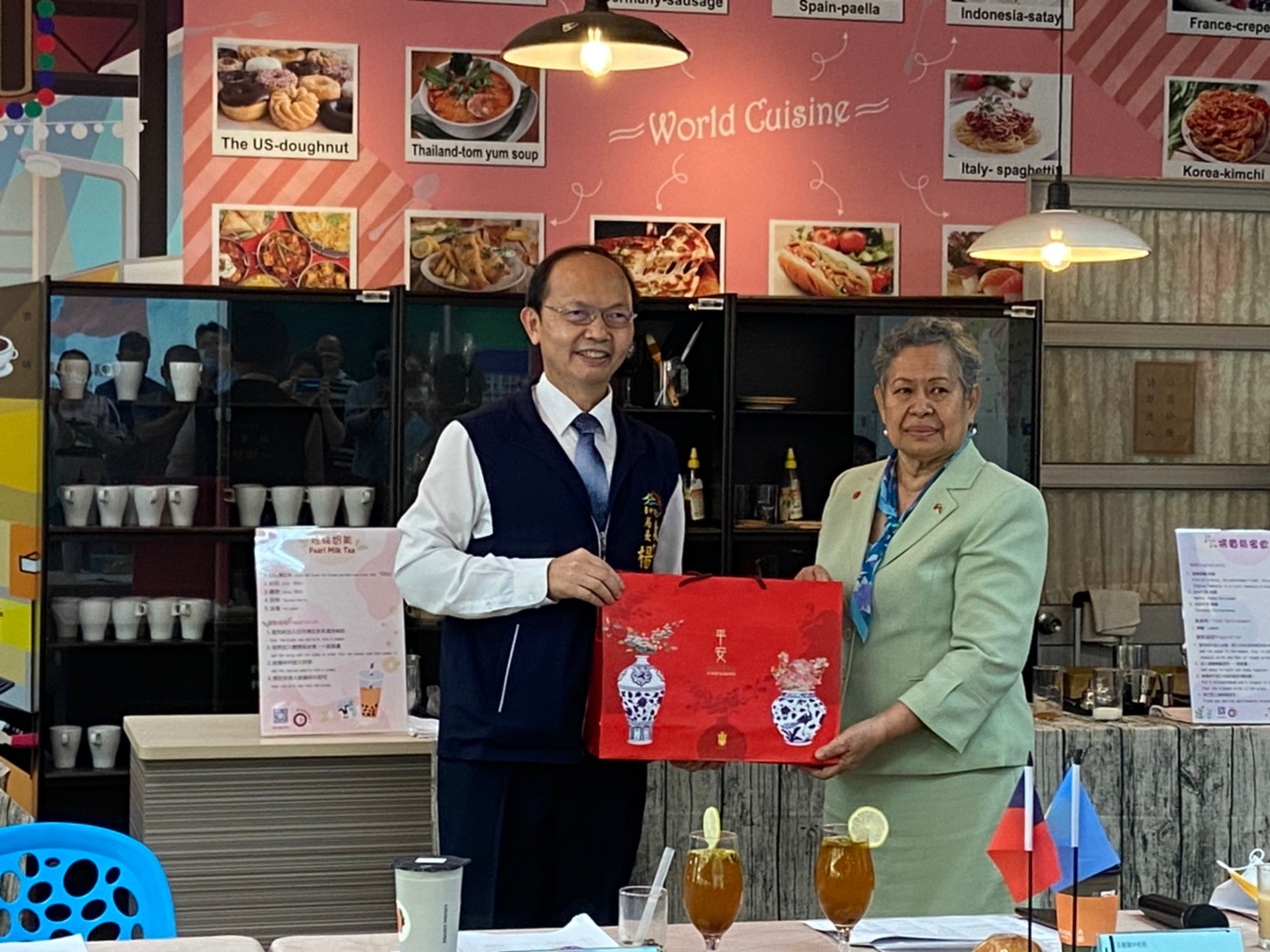 帛琉共和國駐台大使歐克麗(H.E. Ambassador Dilmei Louisa Olkeriil)為了解台灣中小學教育,由富爾達健康事業有限公司董事長兼帛琉大使館榮譽總領事張啟城安排昨(21)日參訪台中市立至善國中;市府教育局長楊振昇到場歡迎歐克麗大使,他表示,市長盧秀燕重視學生英語能力的提升,近幾年國中小聘用外籍教師數比108年增加4倍、達126人,維持全國第一,未來將推動簽訂國際姊妹校,加強雙邊學生交流。