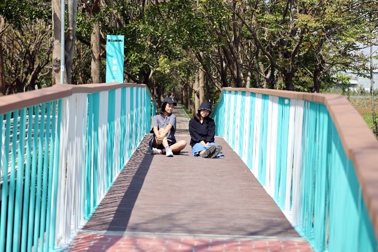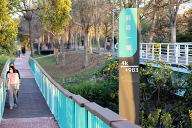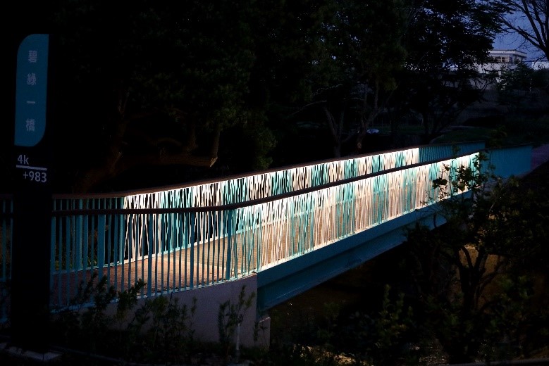 觀旅局表示,潭雅神綠園道全長約13.1公里,是台中知名自行車專用道,因應人行友善步道空間需求,此次針對「潭雅神綠園道」4.9K至5.2K增設兩座人行景觀橋,並改善11.1K觀飛機木棧道平台,景觀橋分別為碧綠一橋及二橋,串接東西兩側人行步道,優化環境友善空間,蒂芬尼綠的配色柔和浪漫十分搶眼,夜間打燈更散發獨特的時尚氣息與美感。