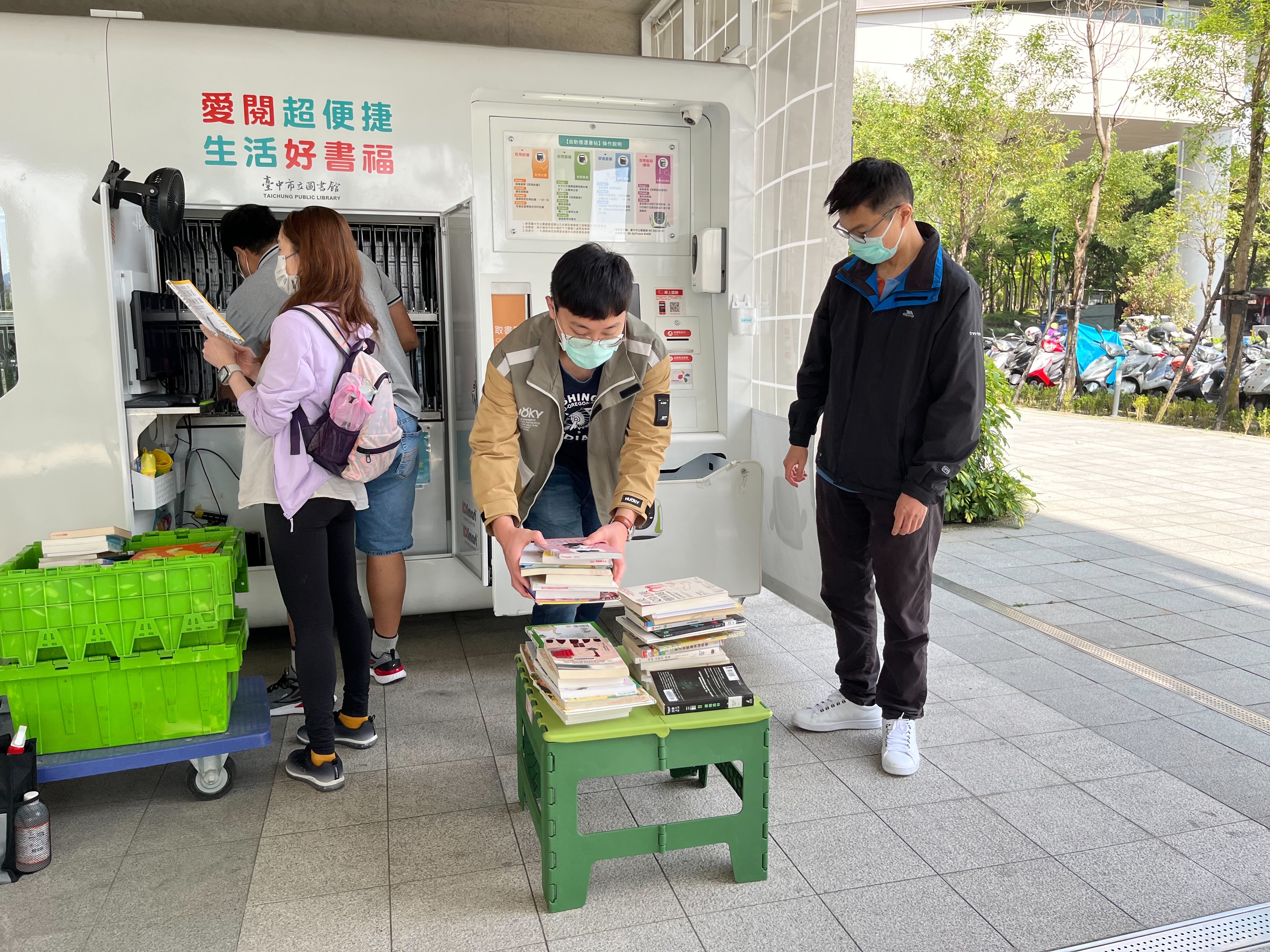 文化局表示,美光企業志工首度走入圖書館,瞭解館內日常讀者服務大小事,除了在服務台協助館員借還書、找齊民眾預約書籍,以及幫忙整書、上架和圖書除菌等,並特別安排至中捷松竹站的「自助借還書站」,與館員一起進行機台操作,完成整書、補書等工作,讓美光員工得以一窺便捷的自助借還書站後台操作流程及實務。