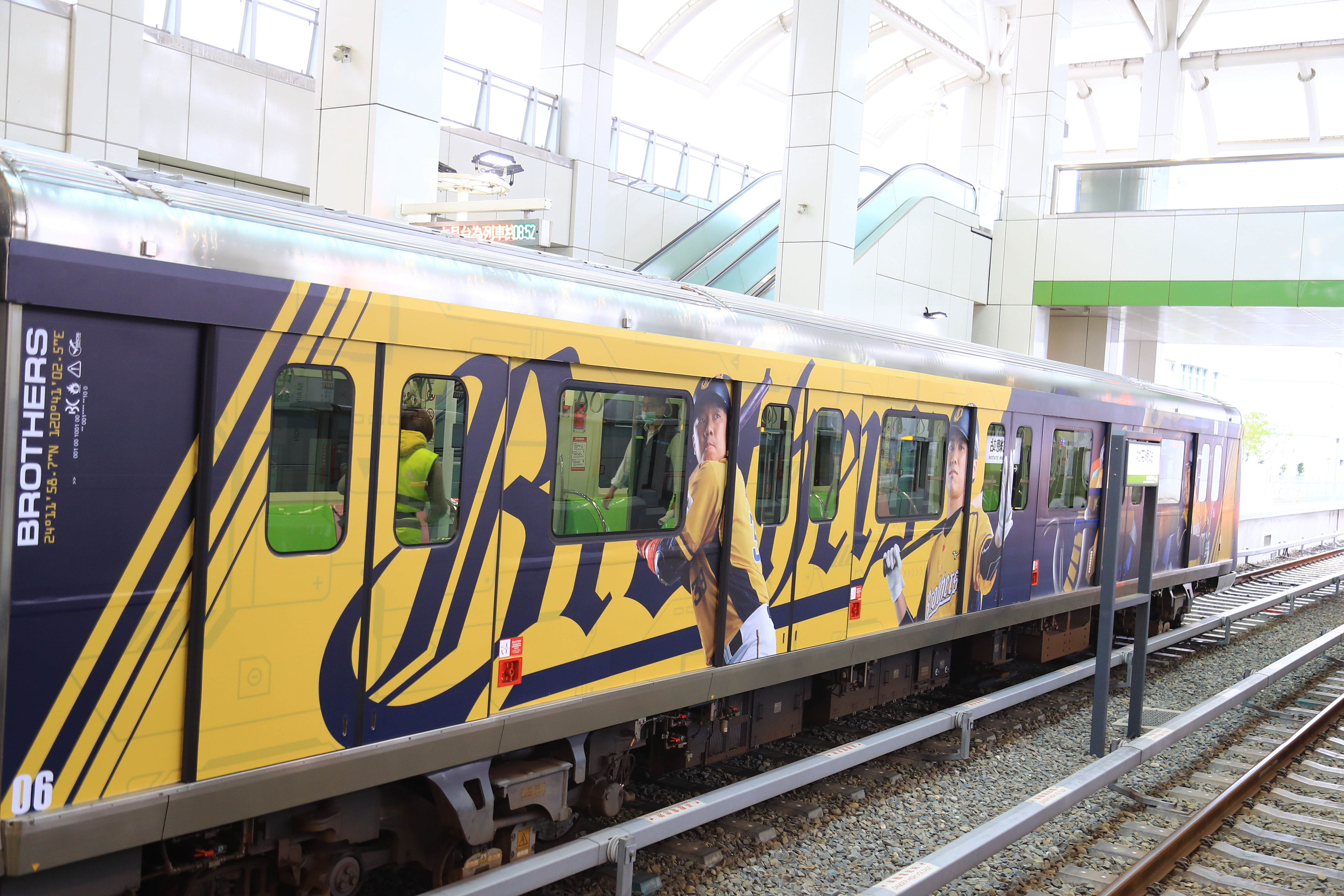 「猛瑪‧鋼鐸拉王者列車」啟航記者會今日在中捷北屯總站舉行,啟航儀式後,中信兄弟領隊劉志威帶領媒體搭上首航列車,前往文心崇德站,中信兄弟應援團團長小白、啦啦隊Passion Sisters導覽車廂內彩繪亮點及主題車站新視覺,並分享必拍的打卡點。盧市長今日也穿上中信兄弟的球衣,和化身為「猛瑪.鋼鐸拉王者列車」的中捷列車一同合影,場面熱鬧。
