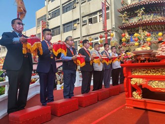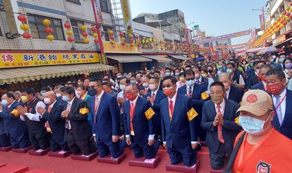 令狐副市長表示,大甲媽祖南下嘉義新港繞境進香,已邁入第35年,是台灣現代民間信仰中最負盛名的迎神賽會活動之一,大甲媽境行經台中、彰化、雲林、嘉義等4縣市,年年吸引眾多信眾跟隨參與,已成為全民重要的宗教文化活動,更被Discovery頻道列為世界三大宗教盛事之一,追隨媽祖鑾駕的進香團隊們虔誠參與,展現對媽祖的信仰,相信媽祖的慈悲和靈驗,保佑疫情遠離,並祈願台灣平順安康。