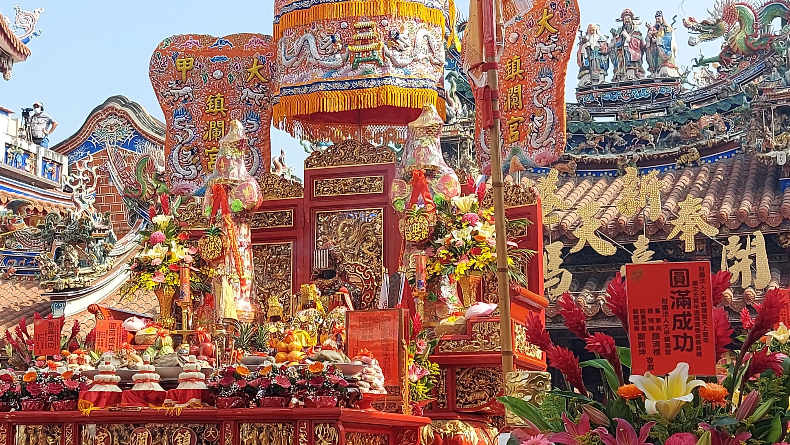 大甲鎮瀾宮媽祖繞境8日晚間起駕,展開9天8夜繞境,11日晚間駐駕嘉義縣新港鄉奉天宮,今(12)日上午舉行媽祖祝壽大典,信徒從四面八方雙手合十朝奉天宮方向虔誠跪拜,場面莊嚴壯觀。副市長令狐榮達今日代表市長盧秀燕出席祈福,祈求媽祖和眾神庇佑國泰民安、風調雨順,鄉親平安幸福。