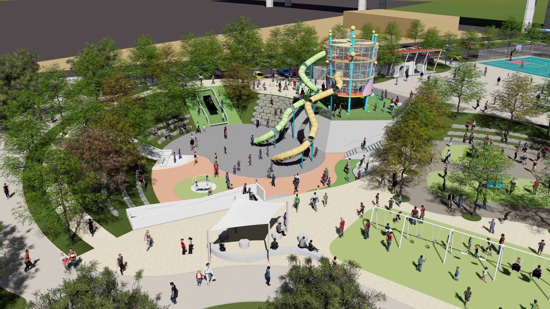 市長盧秀燕專注社會福利政策,上任以後積極營造友善育兒環境,推動「台中美樂地計畫」,至今已完成122座共融公園、53處陽光公廁,其中南屯區黎新公園、豐原區中正公園、大雅區二和公園、大里區大元公園等特色公園,更被民眾稱為是出遊遛小孩最佳去處。建設局未來將持續建置大型特色公園,增加各式各樣遊具,讓小孩玩得盡興又安心。